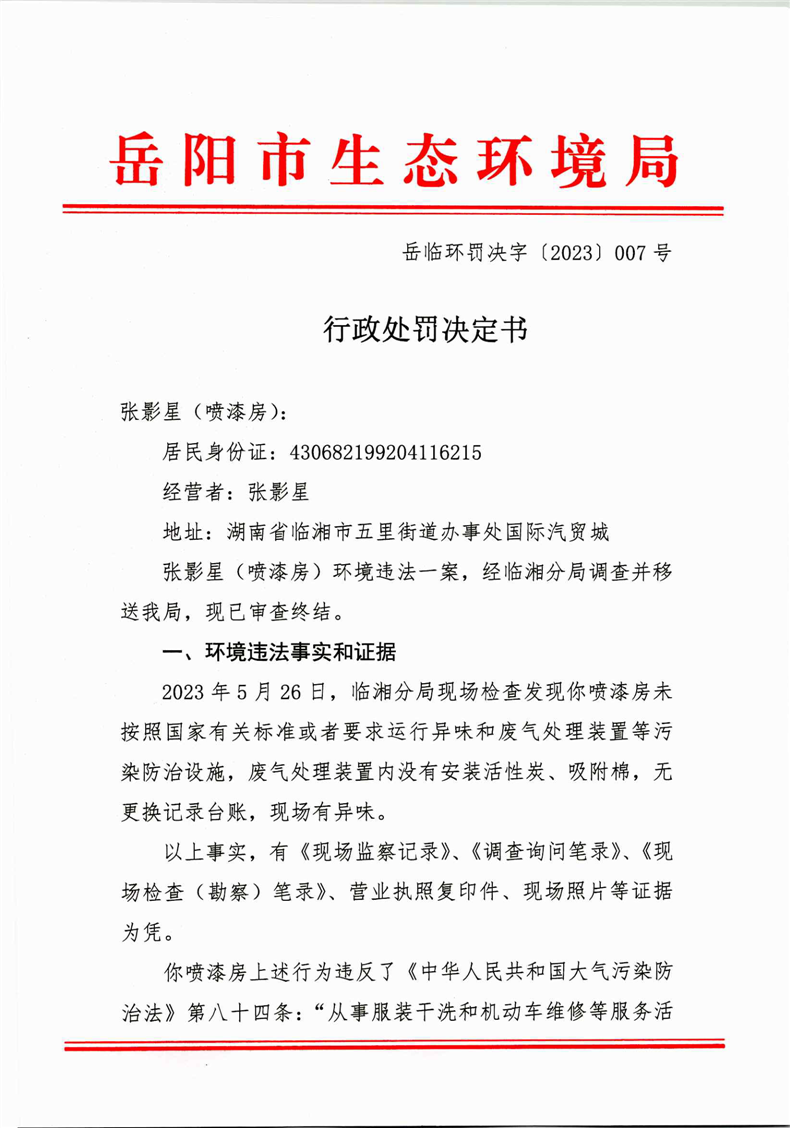 岳臨環罰決字[2023]007號