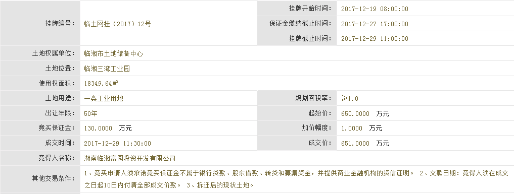 臨土網掛(2017)12號成交