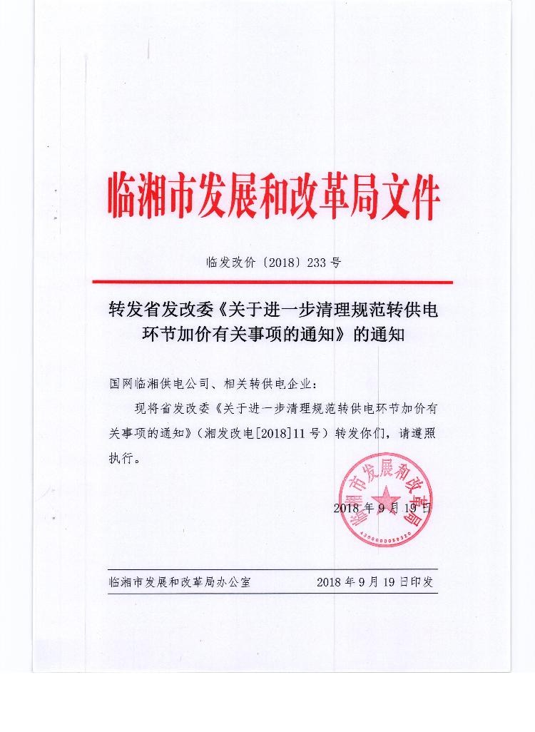 轉(zhuǎn)發(fā)省發(fā)改委《關(guān)于進一步清理規(guī)范轉(zhuǎn)供電環(huán)節(jié)加價有關(guān)事項的通知》的通知