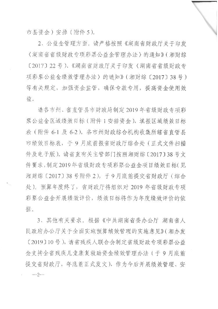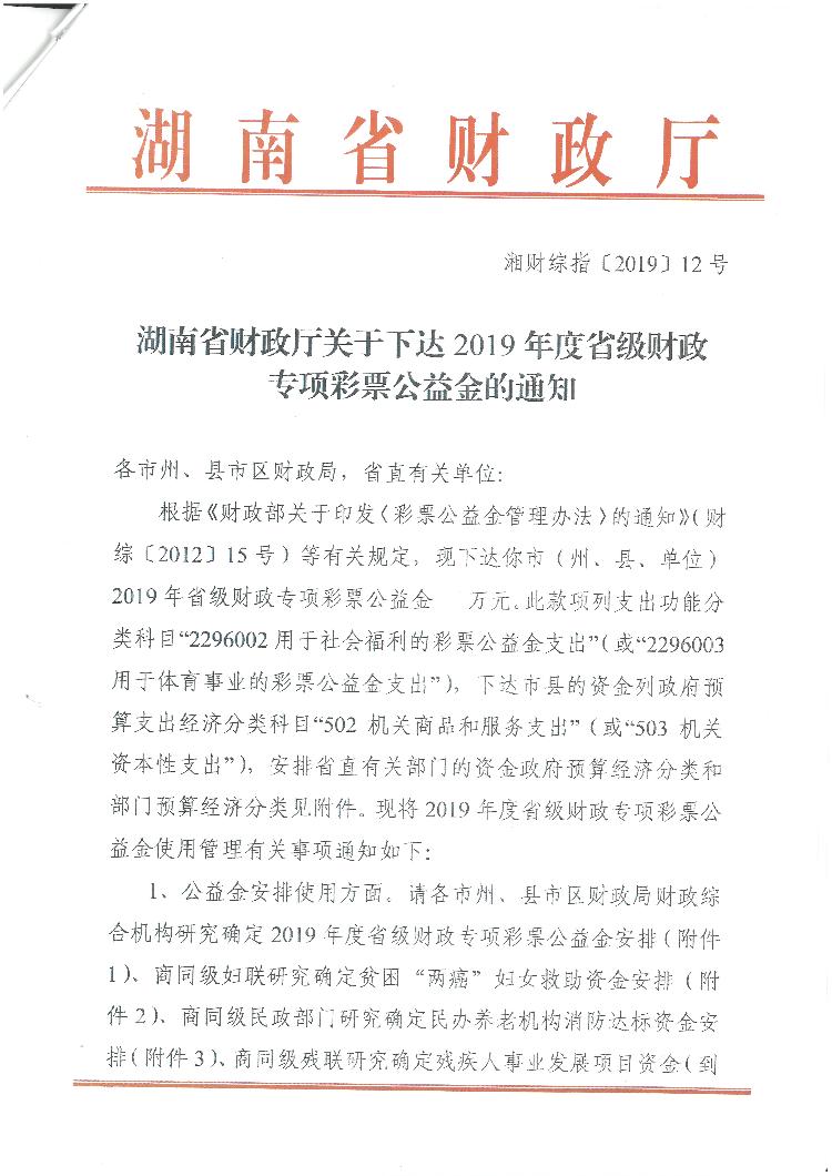 關(guān)于下達(dá)2019年度省級財政專項彩票公益金的通知
