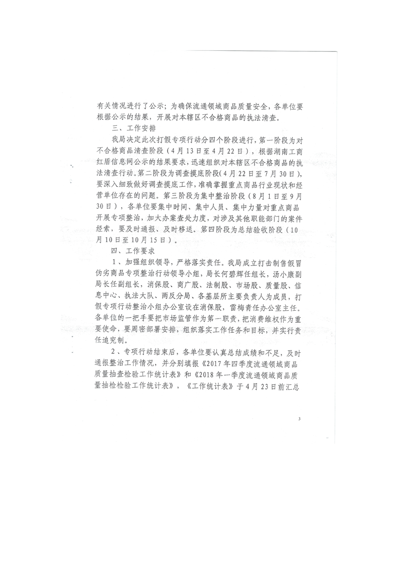 開展打擊制售假冒偽劣商品專項整治行動工作方案