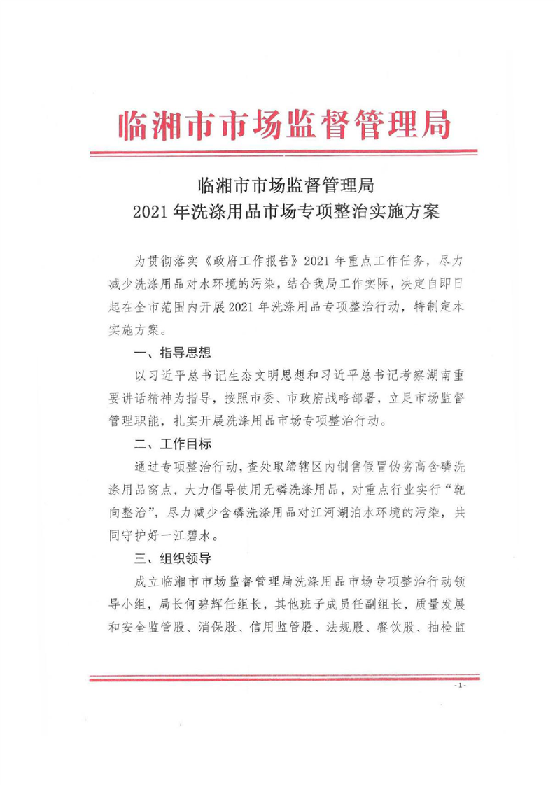 臨湘市市場監督管理局2021年洗滌用品市場專項整治實施方案