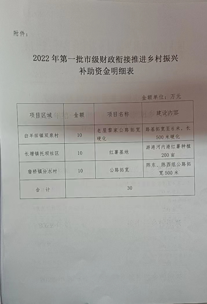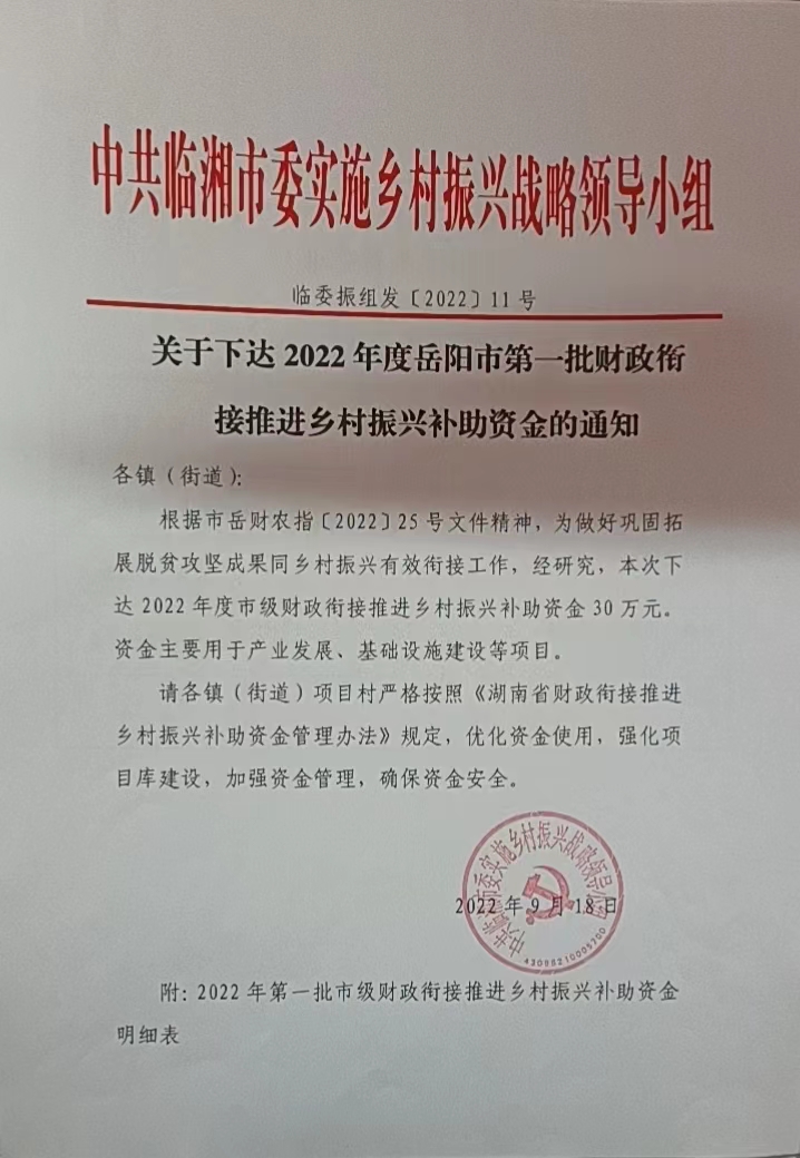 關于下達2022年度岳陽市第一批財政銜接推進鄉村振興補助資金的通知