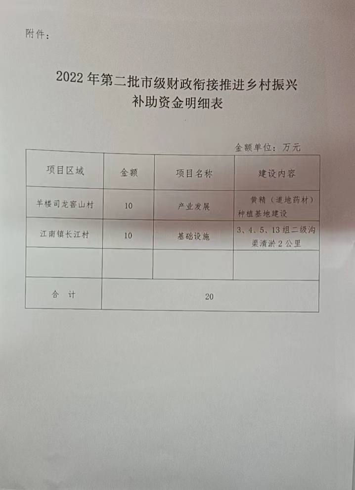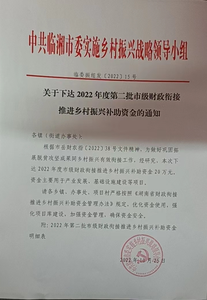 關于下達2022年度第二批市級財政銜接推進鄉村振興補助資金的通知