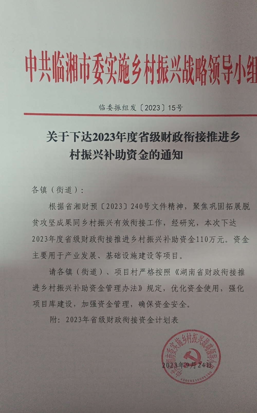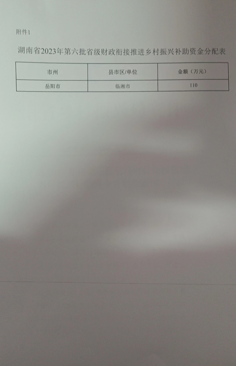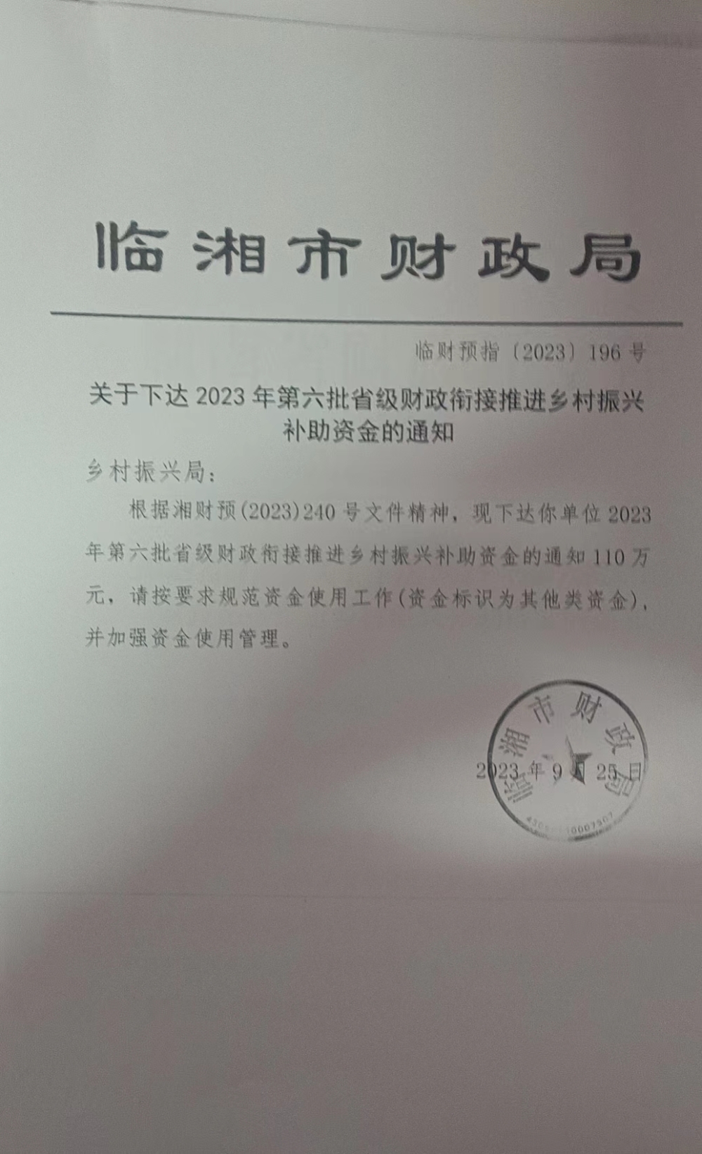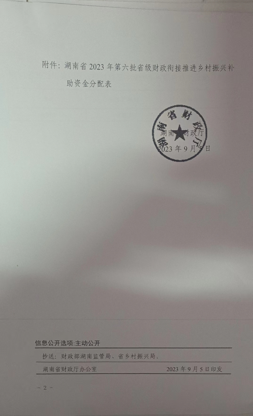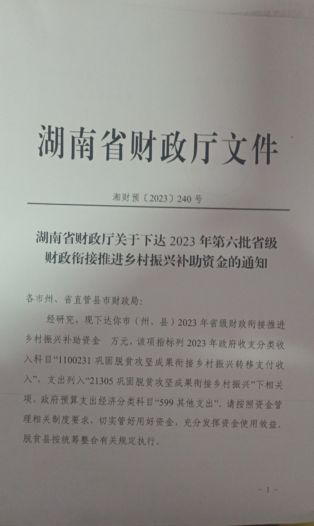 關于下達2023年第六批省級財政銜接推進鄉村振興補助資金的通知(湘財預[2023]240號)