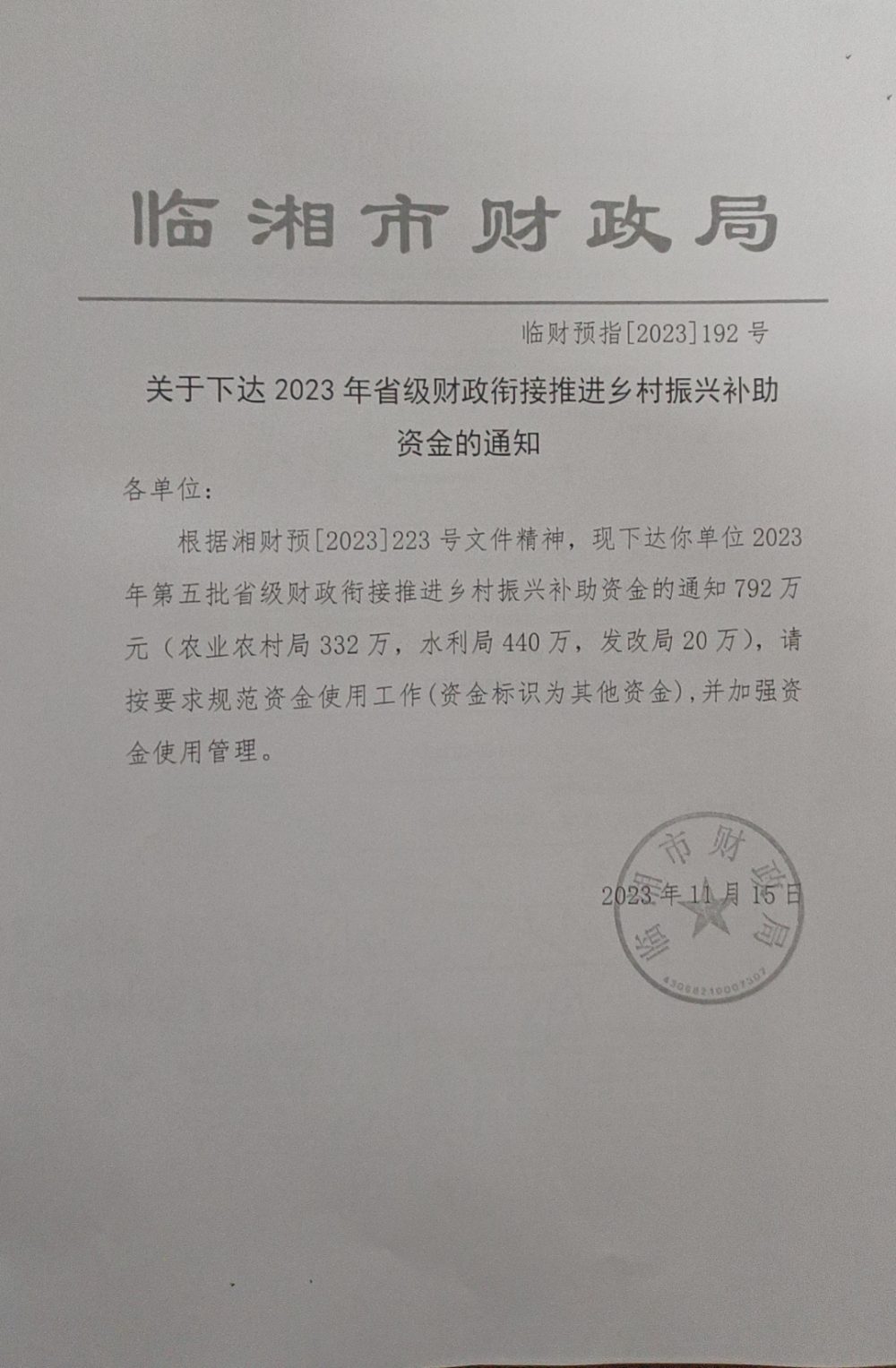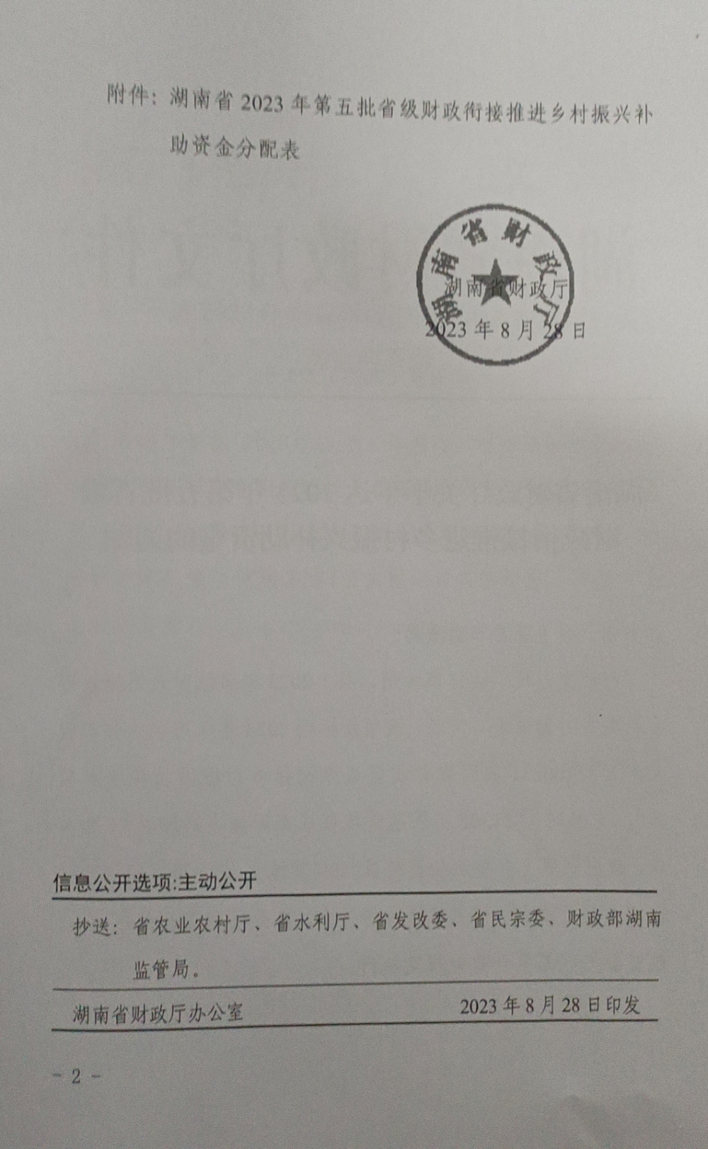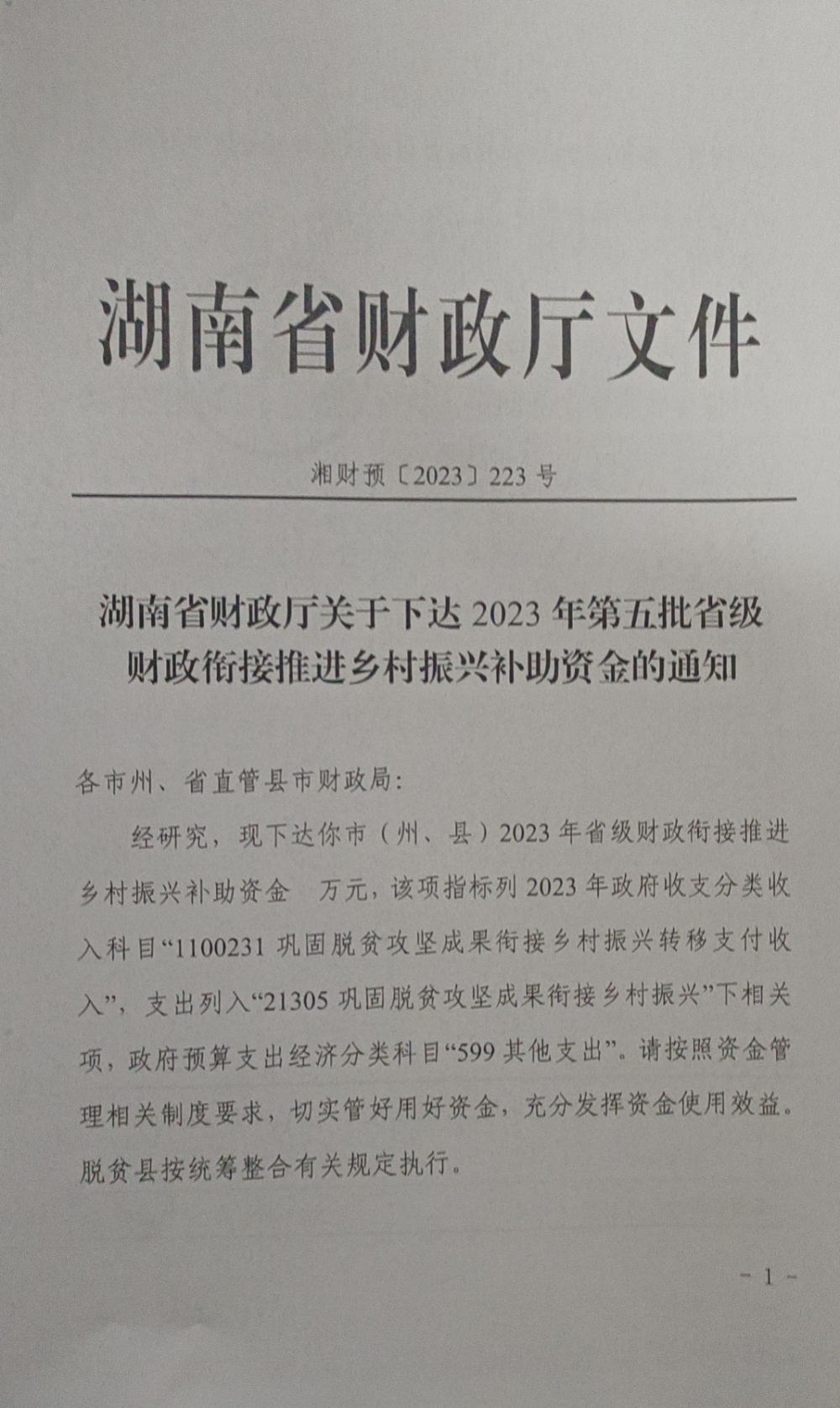 關于下達2023年省級財政銜接推進鄉(xiāng)村振興補助資金的通知(湘財預[2023]223號)