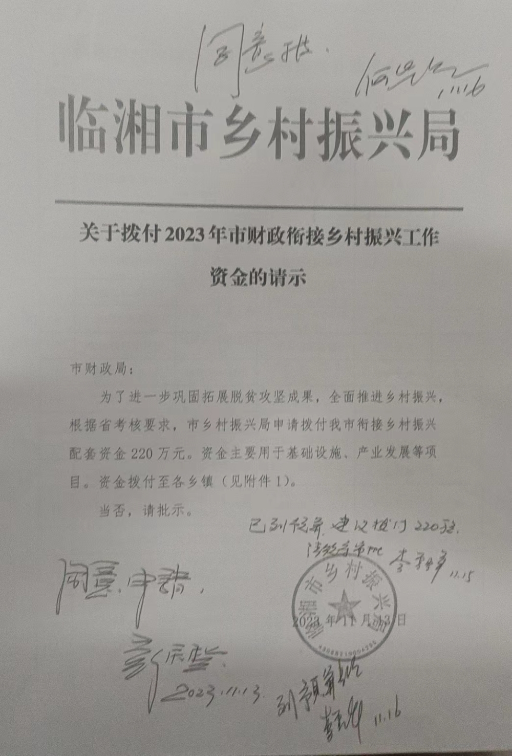 關(guān)于撥付2023年市財政銜接鄉(xiāng)村振興工作資金的請示