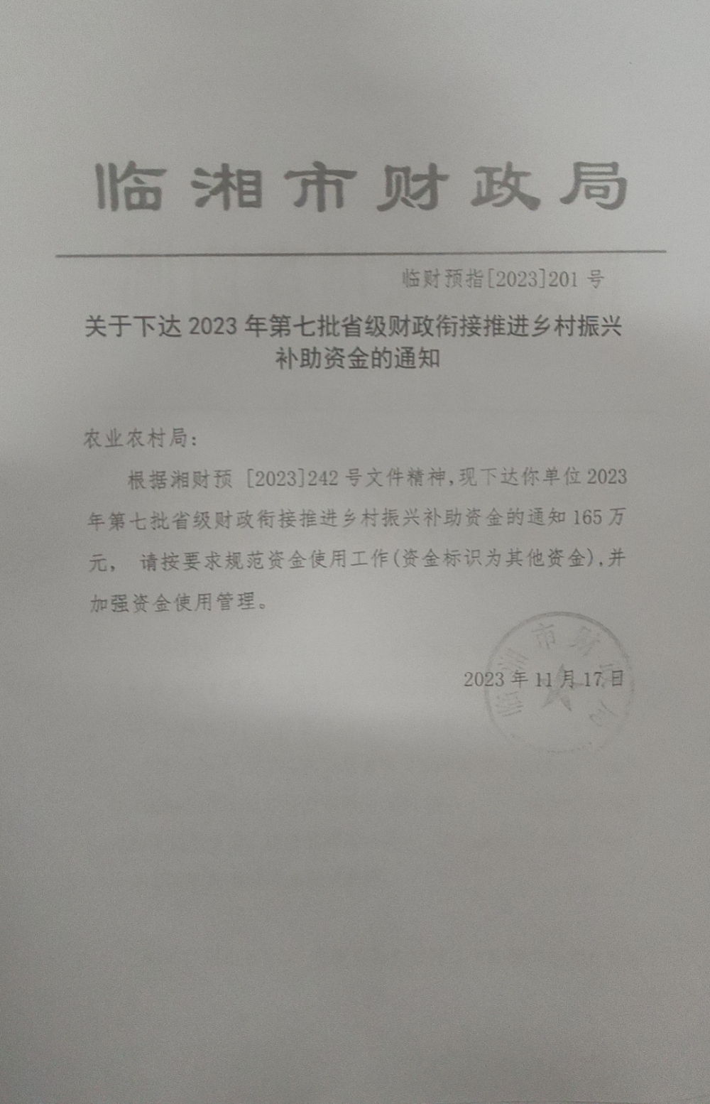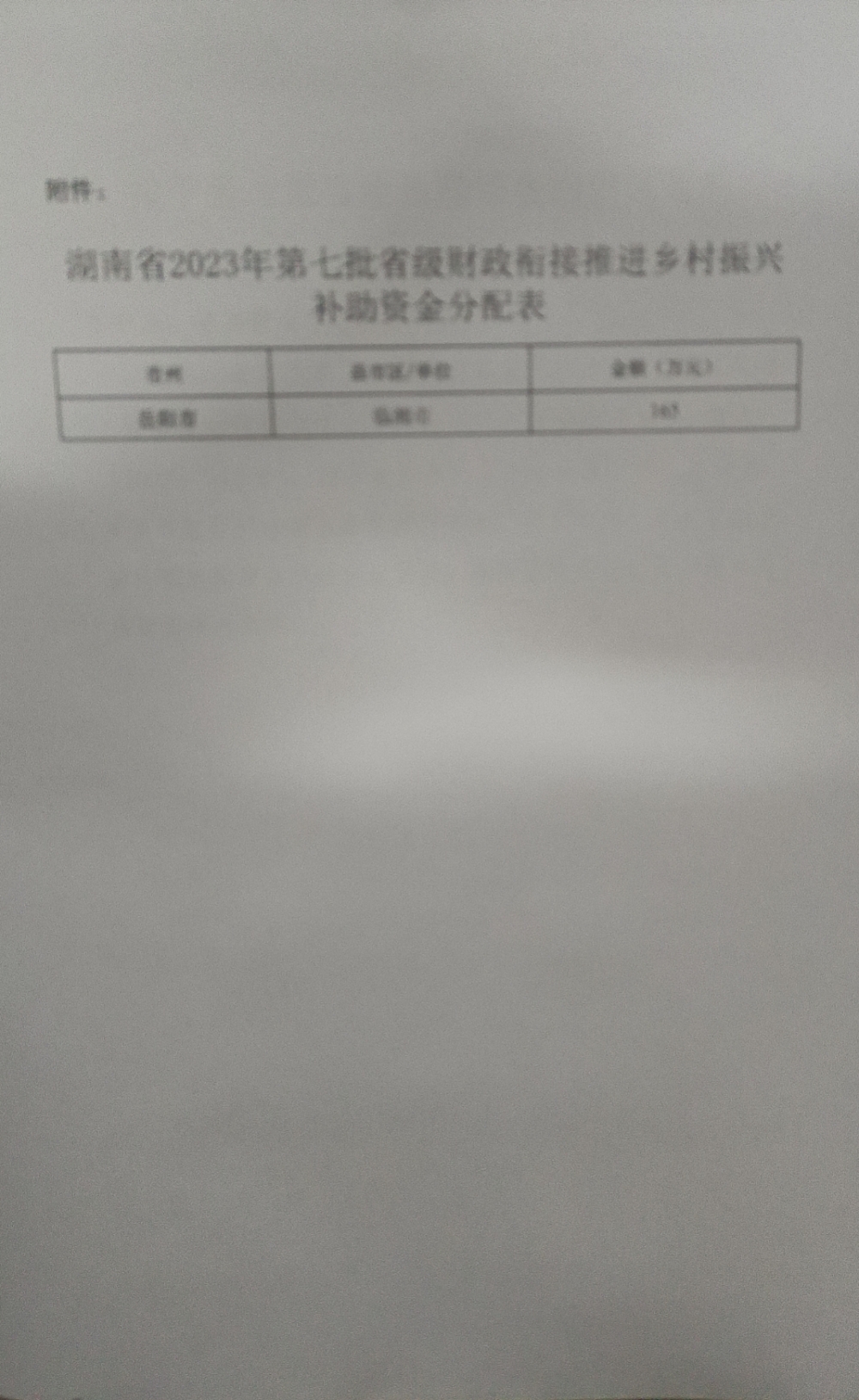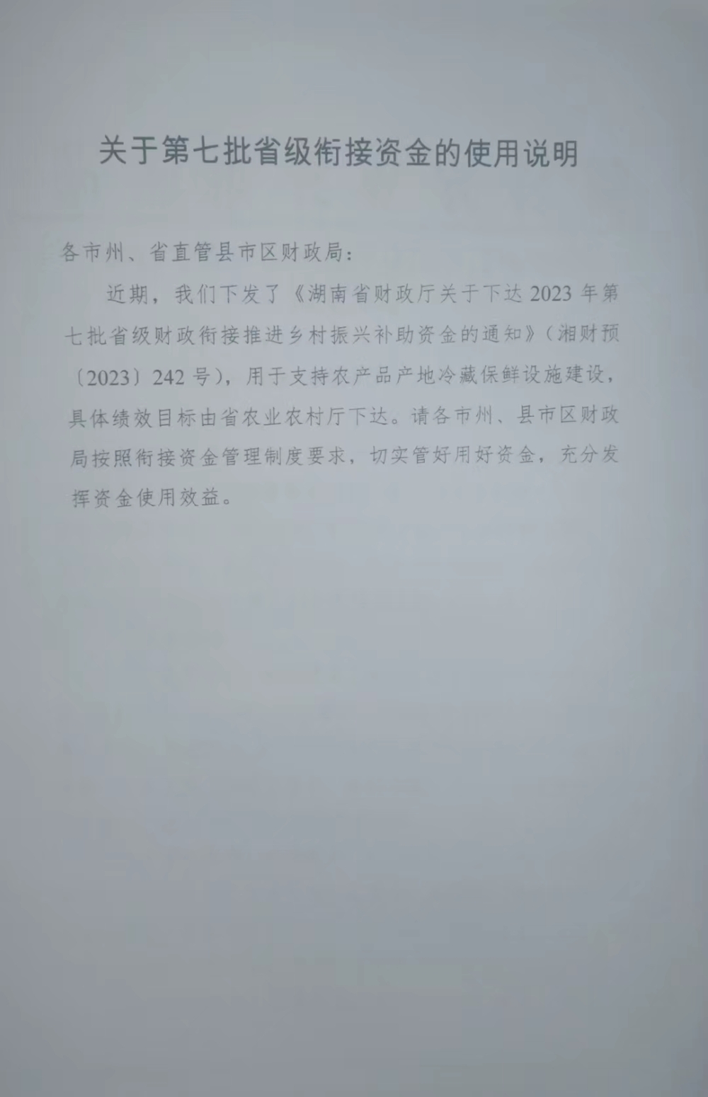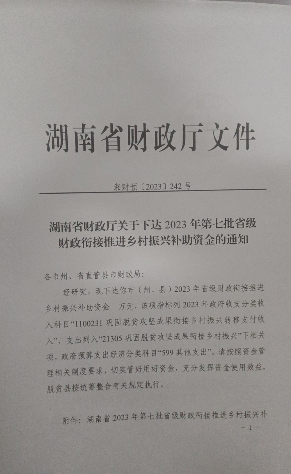 關于下達2023年第七批省級財政銜接推進鄉村振興補助資金的通知(湘財預[2023]242號)