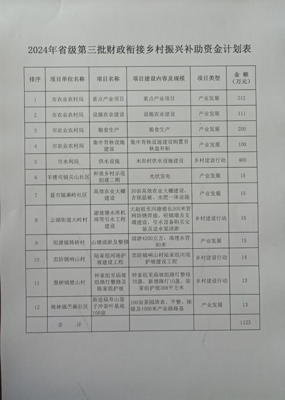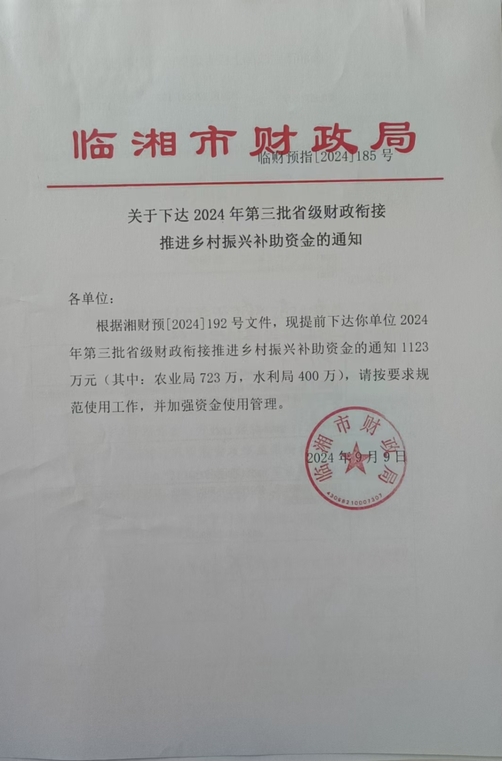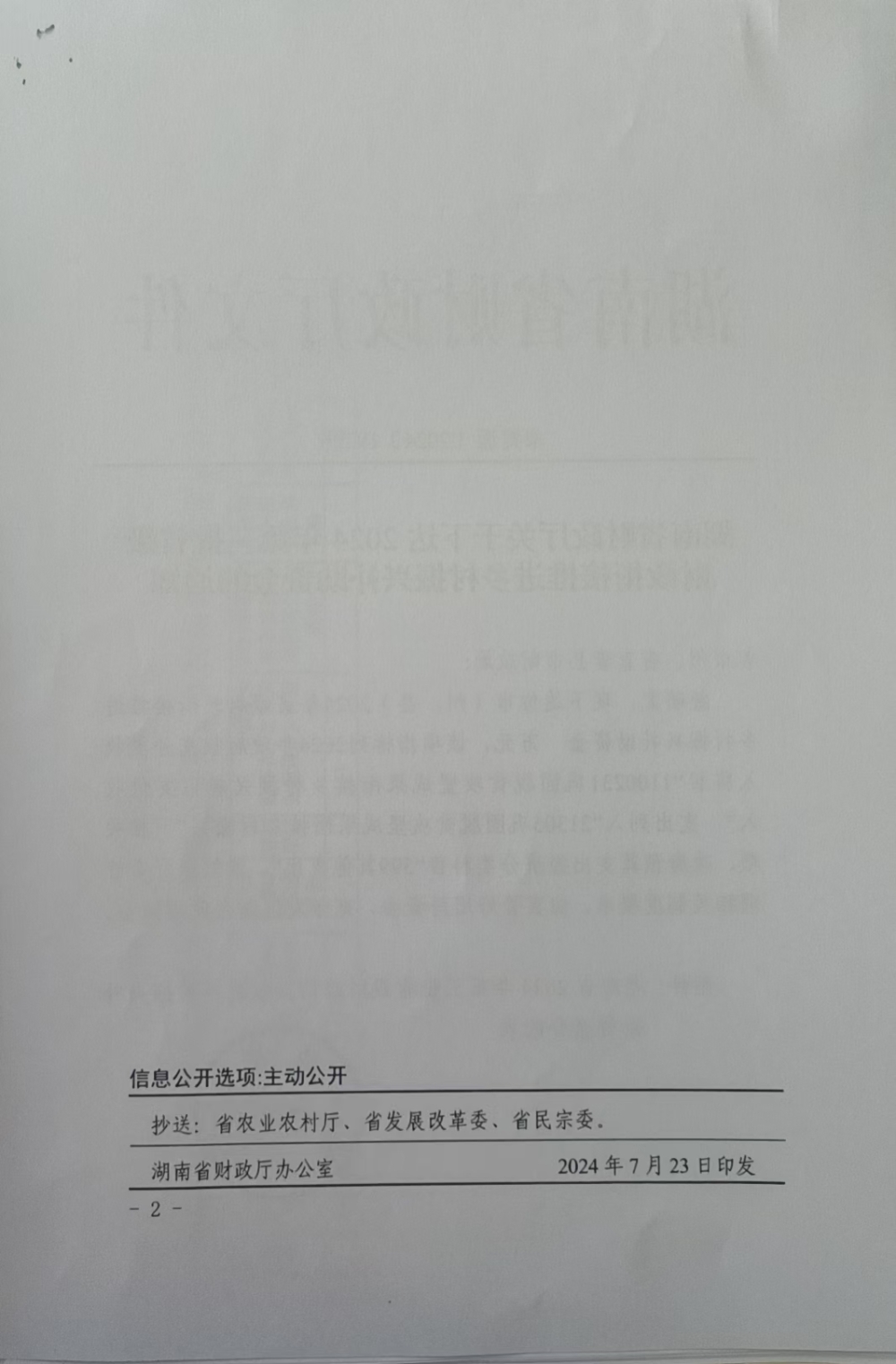 關于下達2024年第三批省級財政銜接推進鄉村振興補助資金的通知(湘財預[2024]192號)