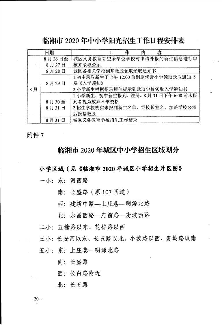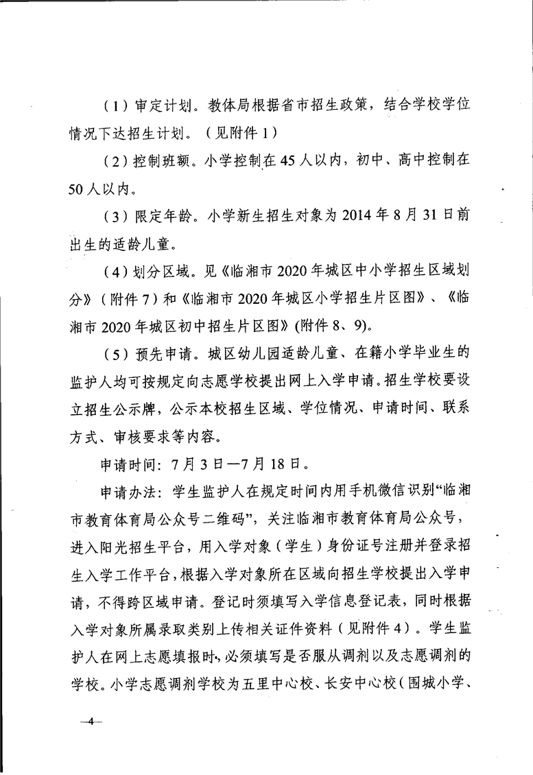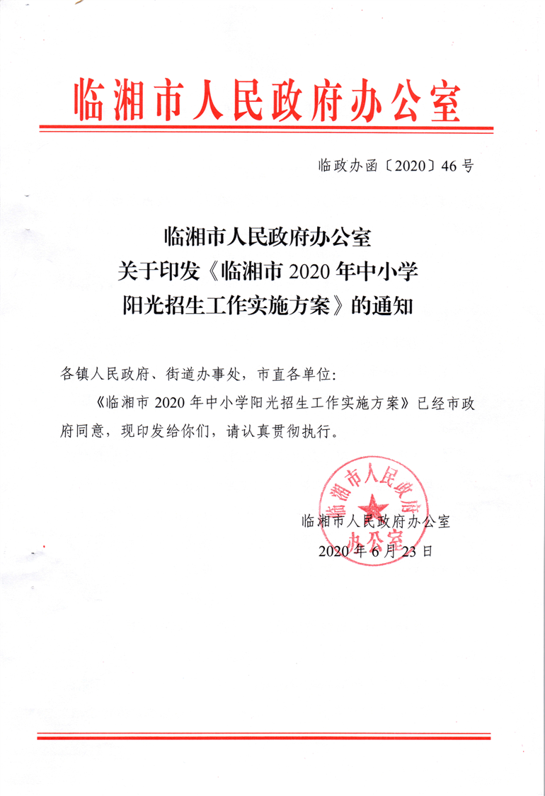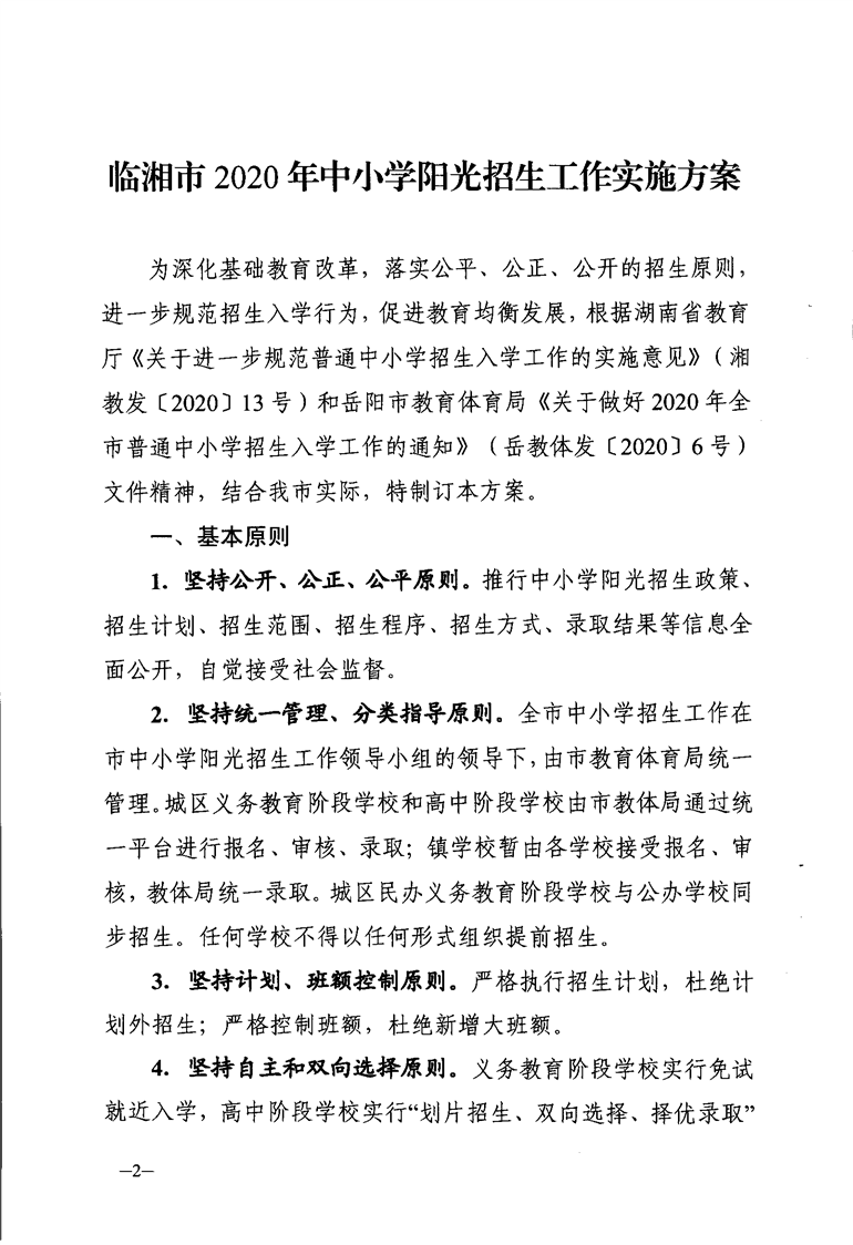 臨湘市2020年中小學陽光招生工作實施方案