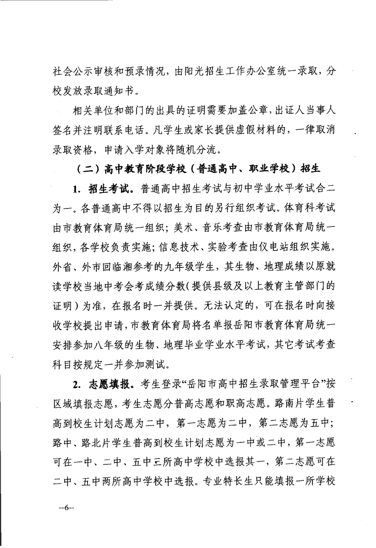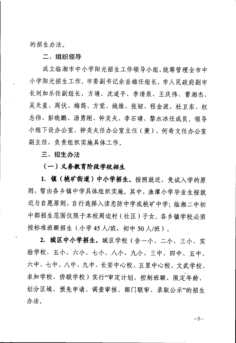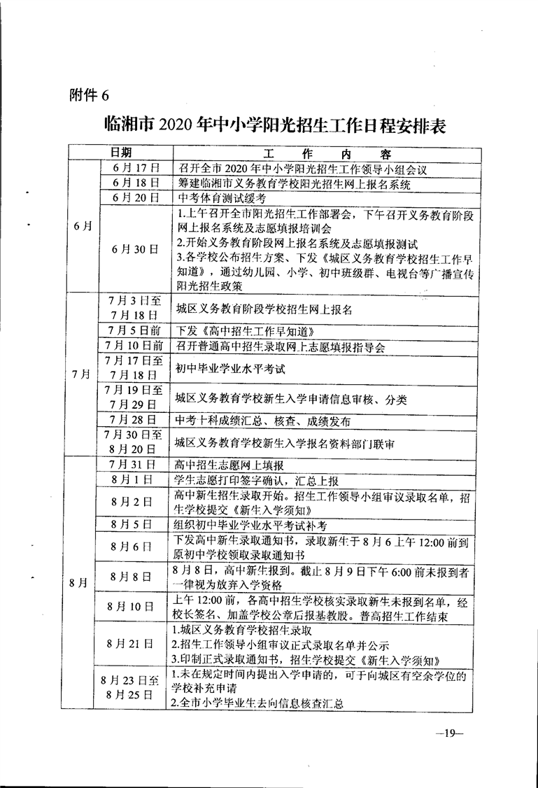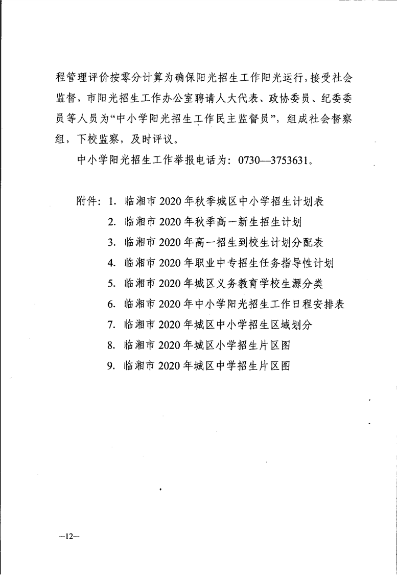 臨湘市2020年中小學陽光招生工作實施方案
