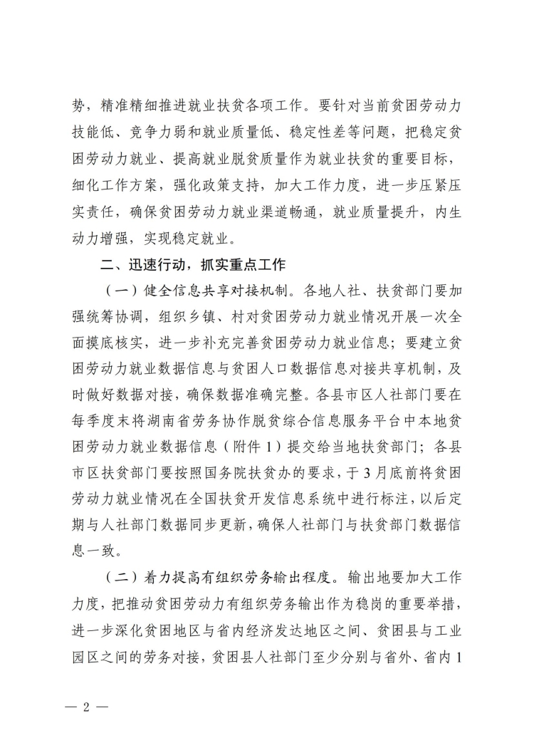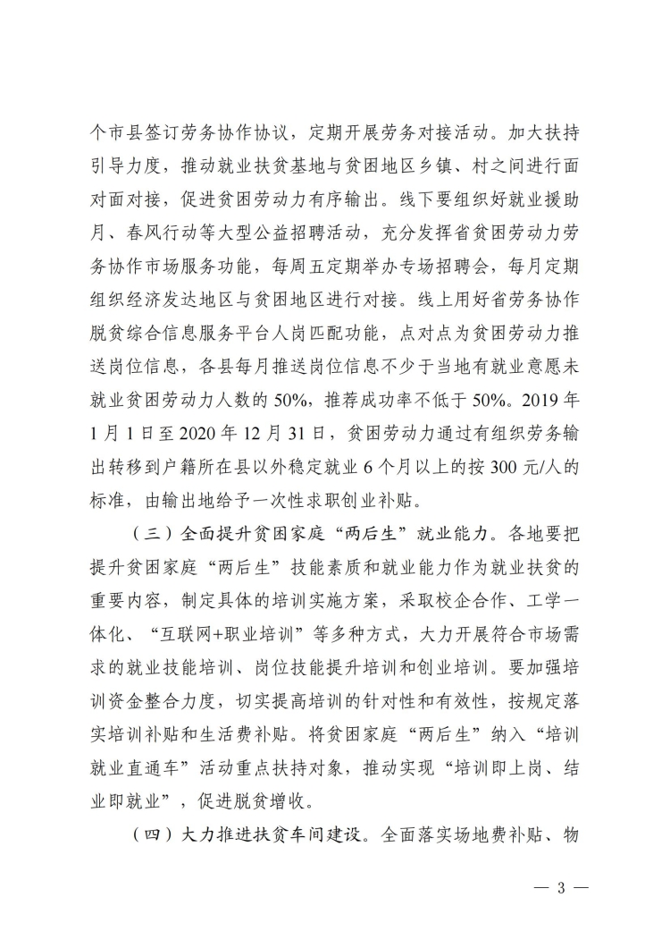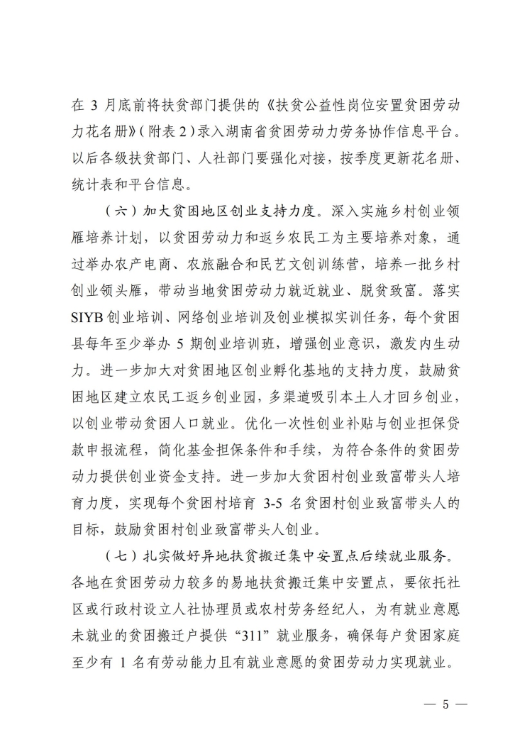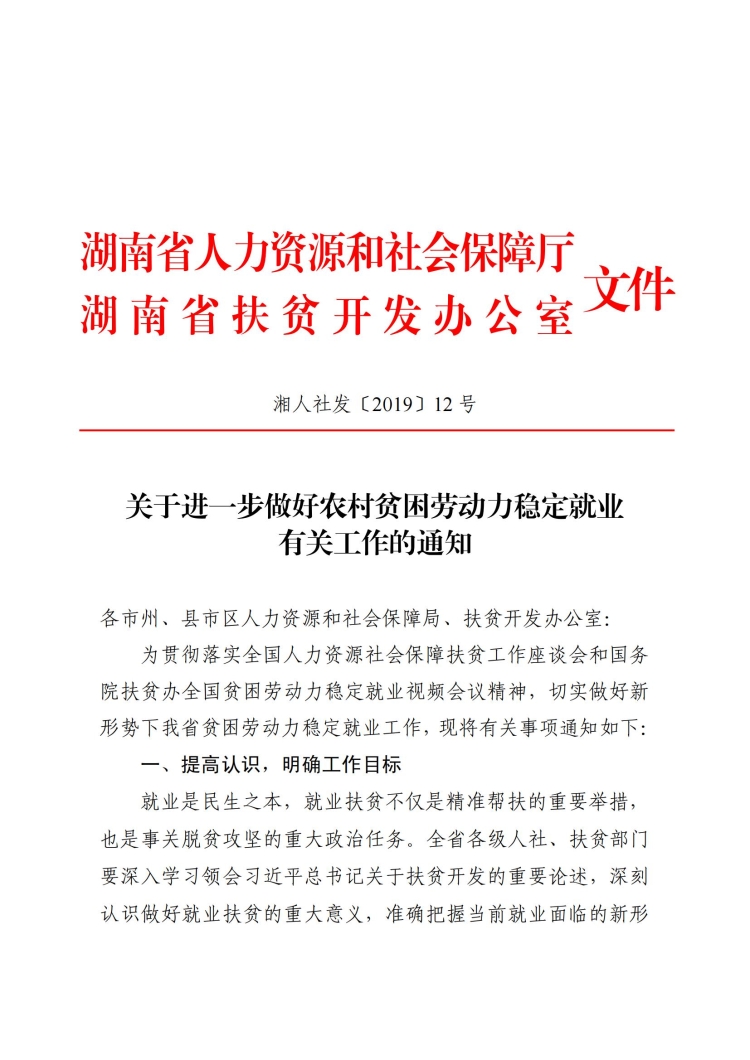 關于進一步做好農村貧困勞動力穩定就業有關工作的通知 湘人社發[2019]12號