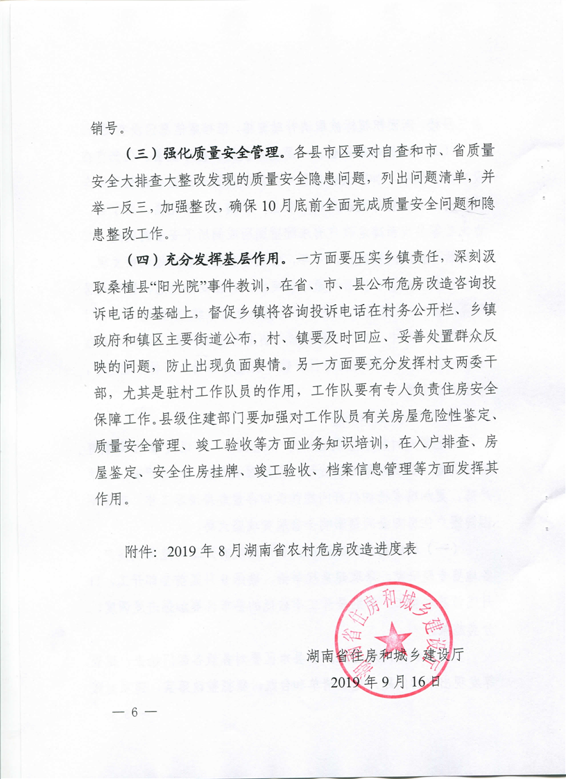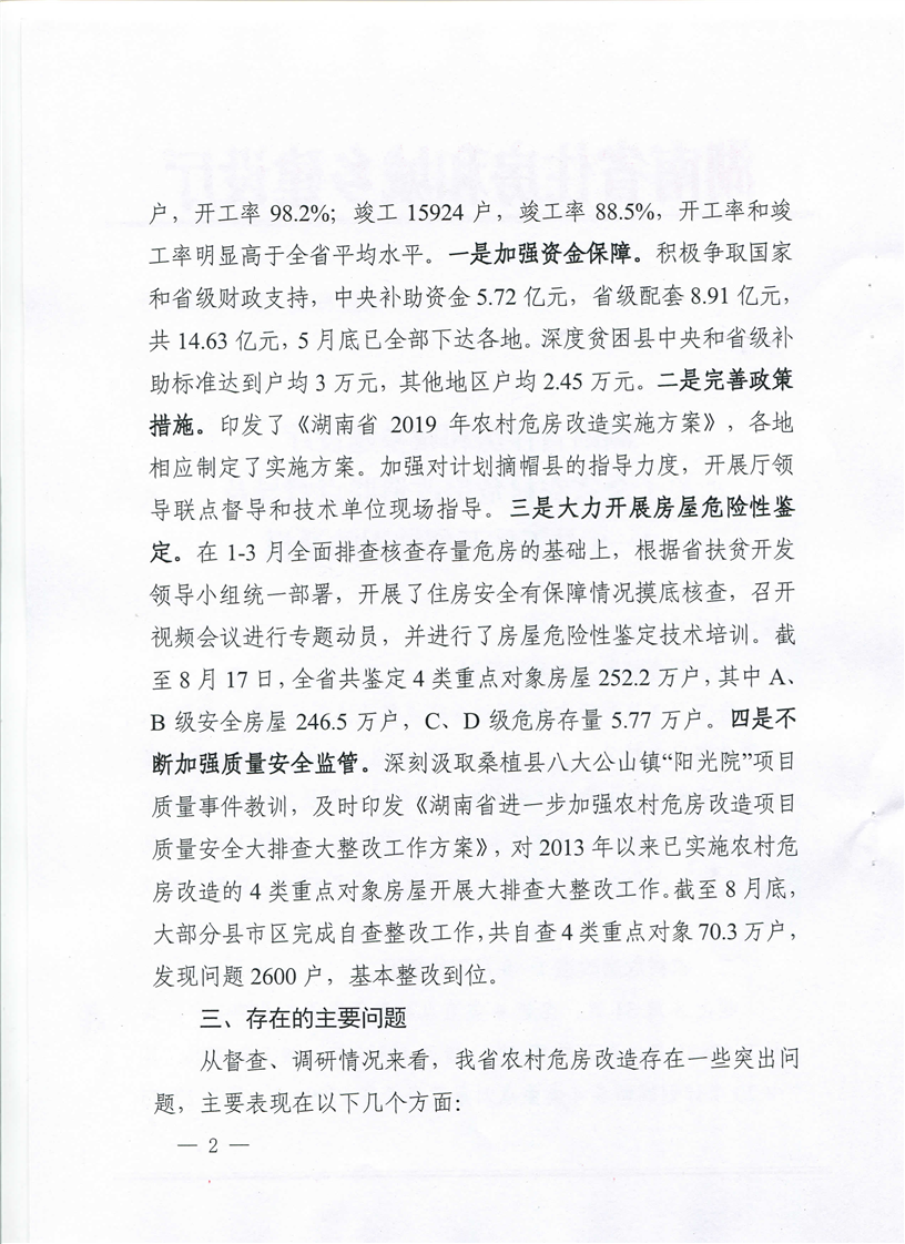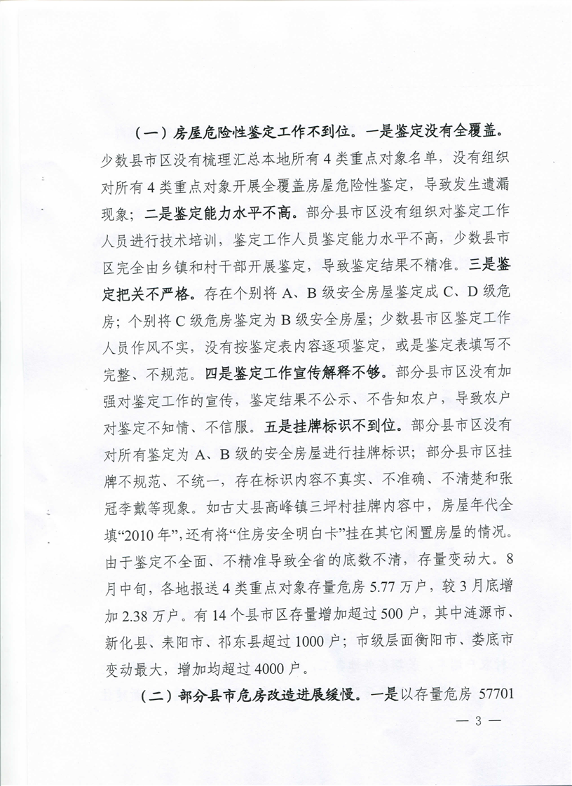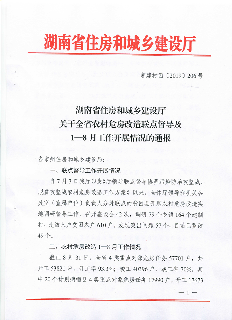 湖南省住房和城鄉建設廳關于全省農村危房改造聯點督導及1-8月份工作開展情況的通報