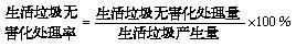 生活垃圾無害化處理率 指報告期生活垃圾無害化處理量與生活垃圾產生量的比率。在統計上,由于生活垃圾產生量不易取得,可用清運量代替。計算公式為: