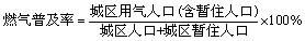 燃?xì)馄占奥?/span> 指報(bào)告期末城區(qū)使用燃?xì)獾某鞘腥丝跀?shù)與城市人口總數(shù)的比率。其中燃?xì)獍ㄈ斯っ簹狻⑻烊粴狻⒁夯蜌馊N。計(jì)算公式為: