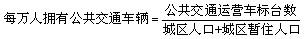 每萬人擁有公共交通車輛 指按城市人口計(jì)算的每萬人平均擁有的公共交通車輛標(biāo)臺(tái)數(shù)。計(jì)算公式:
