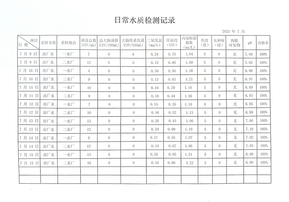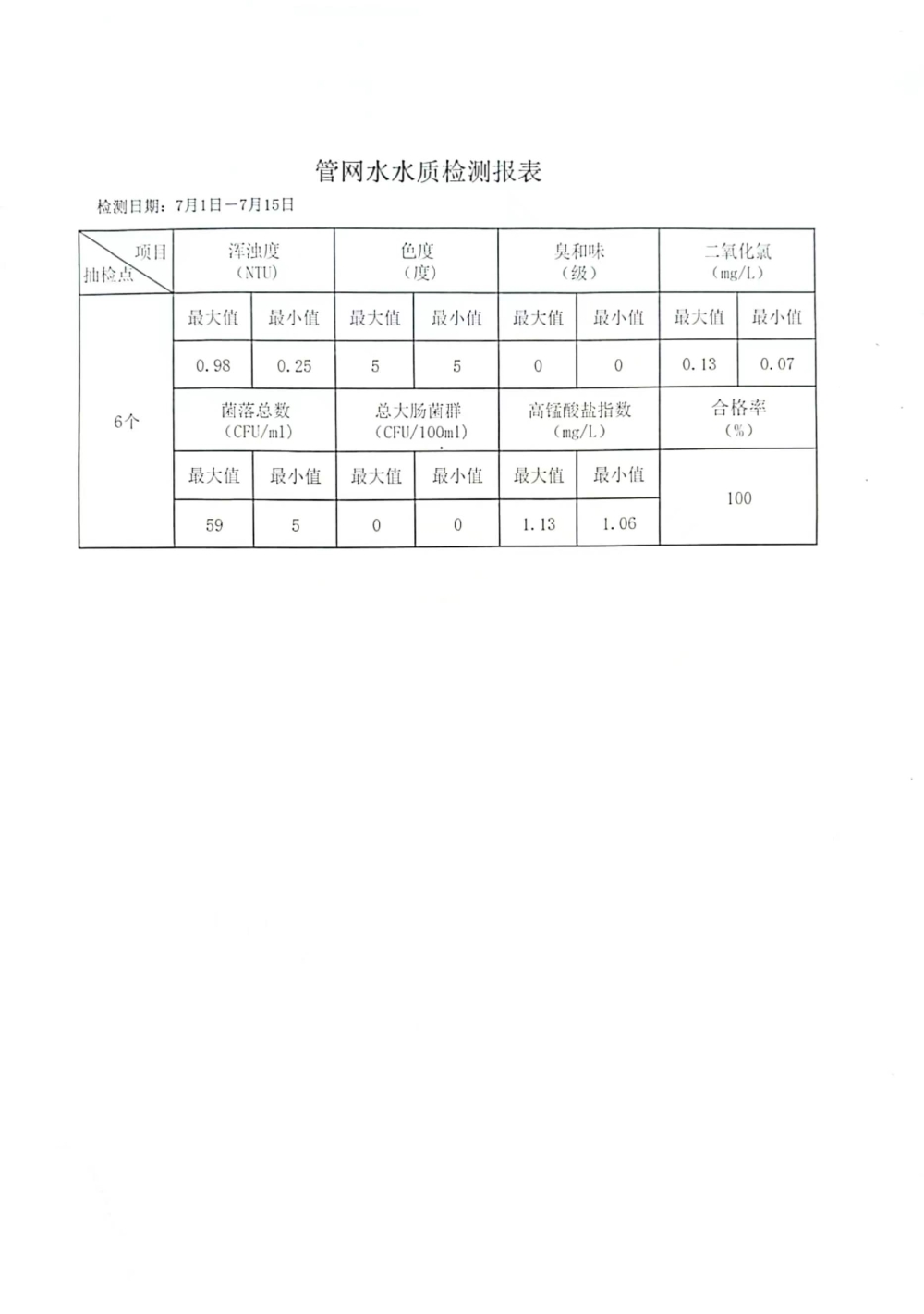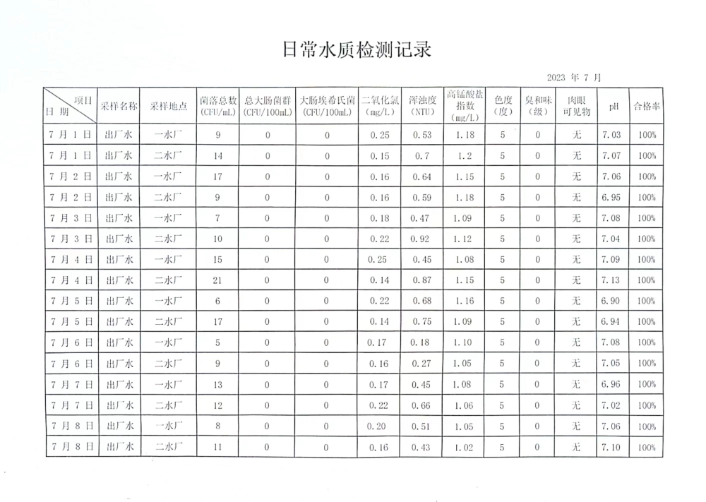 興臨自來水公司日檢、半月檢水質信息公開(7月上半月)