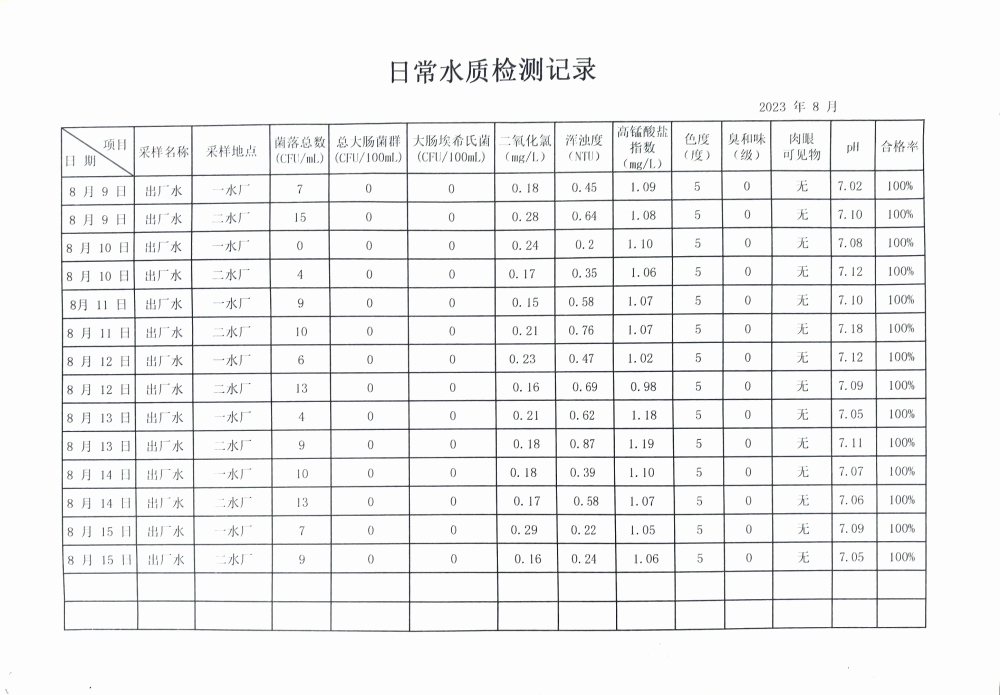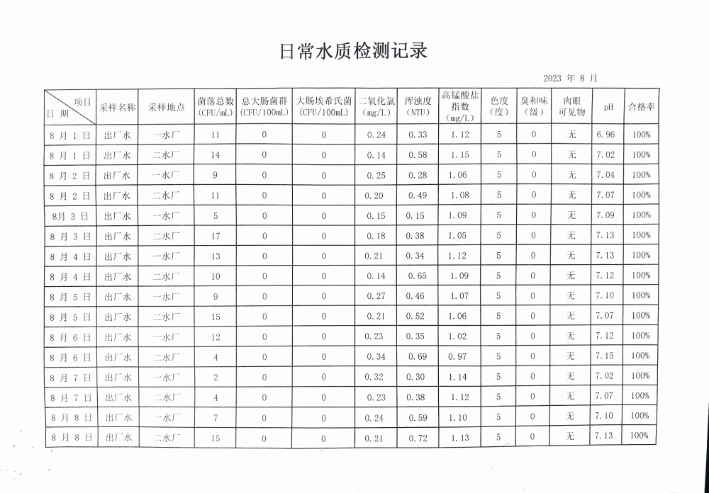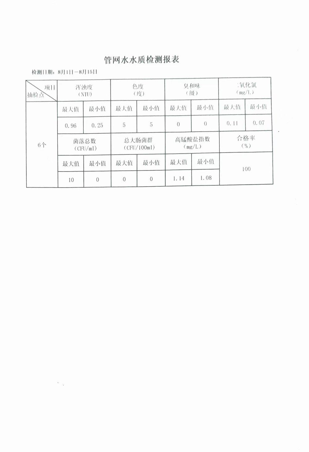 興臨自來水公司日檢、半月檢水質信息公開(8月上半月)