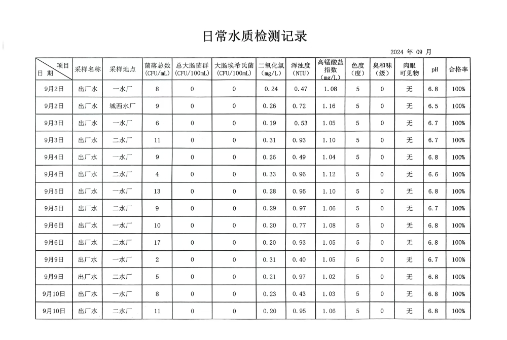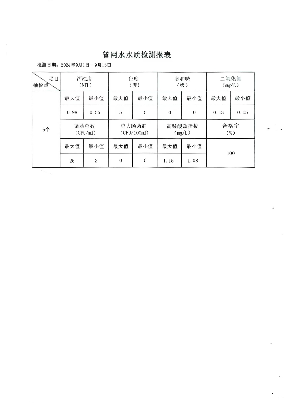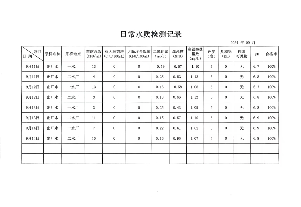 9月上半月興臨自來水公司日檢、半月檢水質信息公開