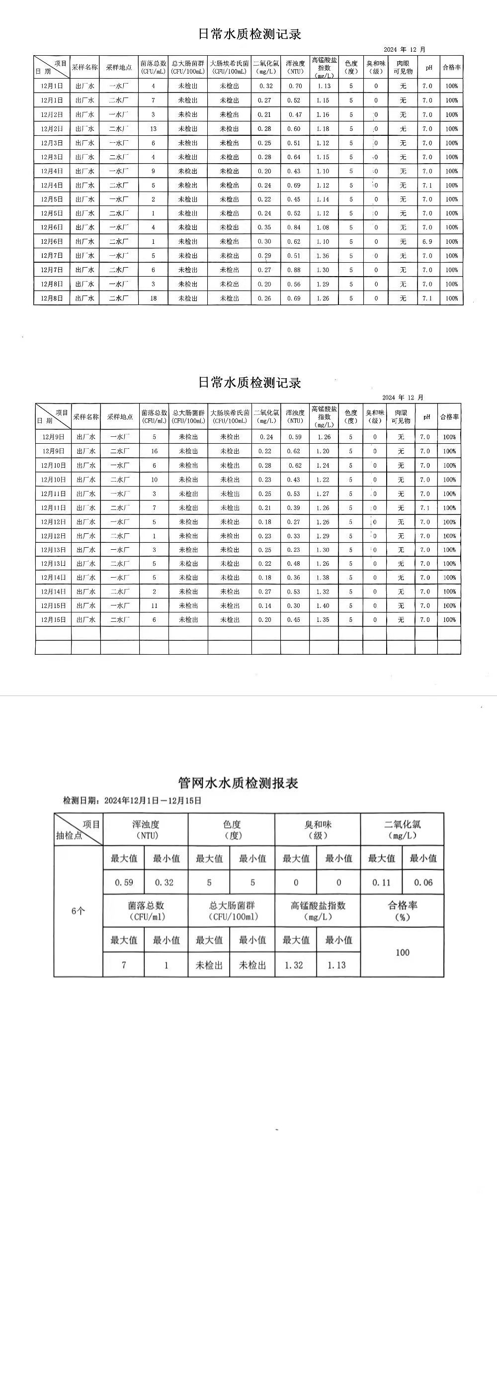 12月上半月興臨自來水公司日檢、半月檢水質(zhì)信息公開