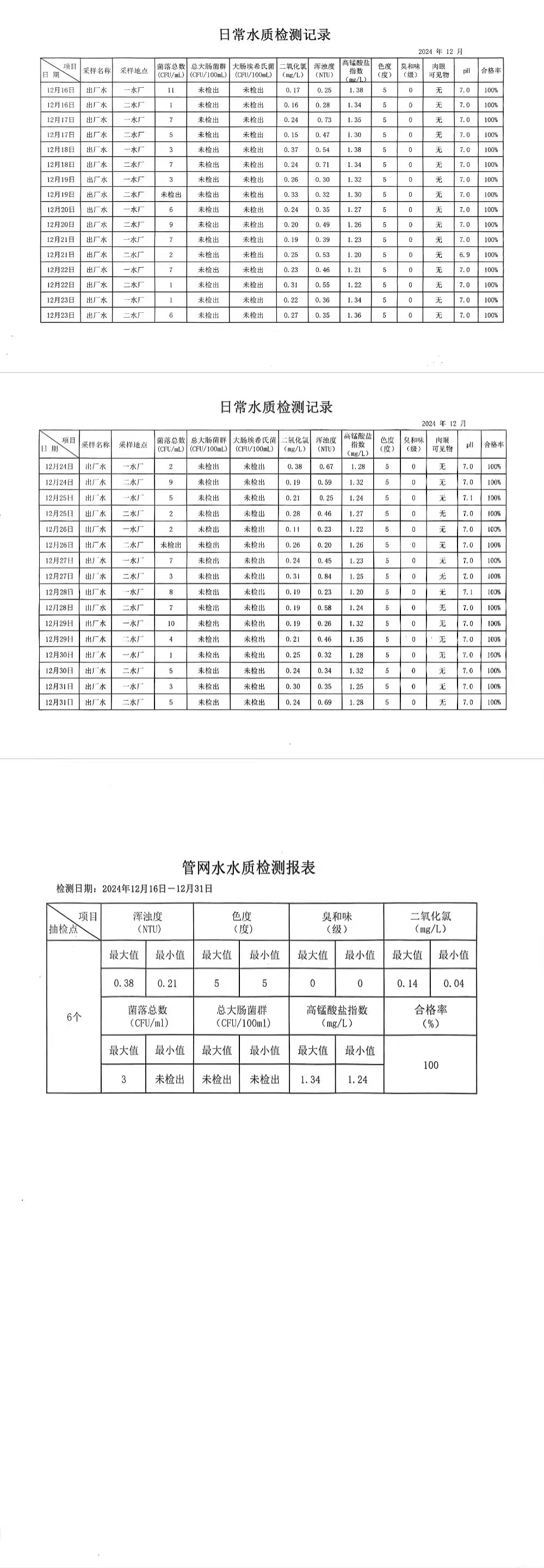 12月下半月興臨自來水公司日檢、半月檢水質信息公開