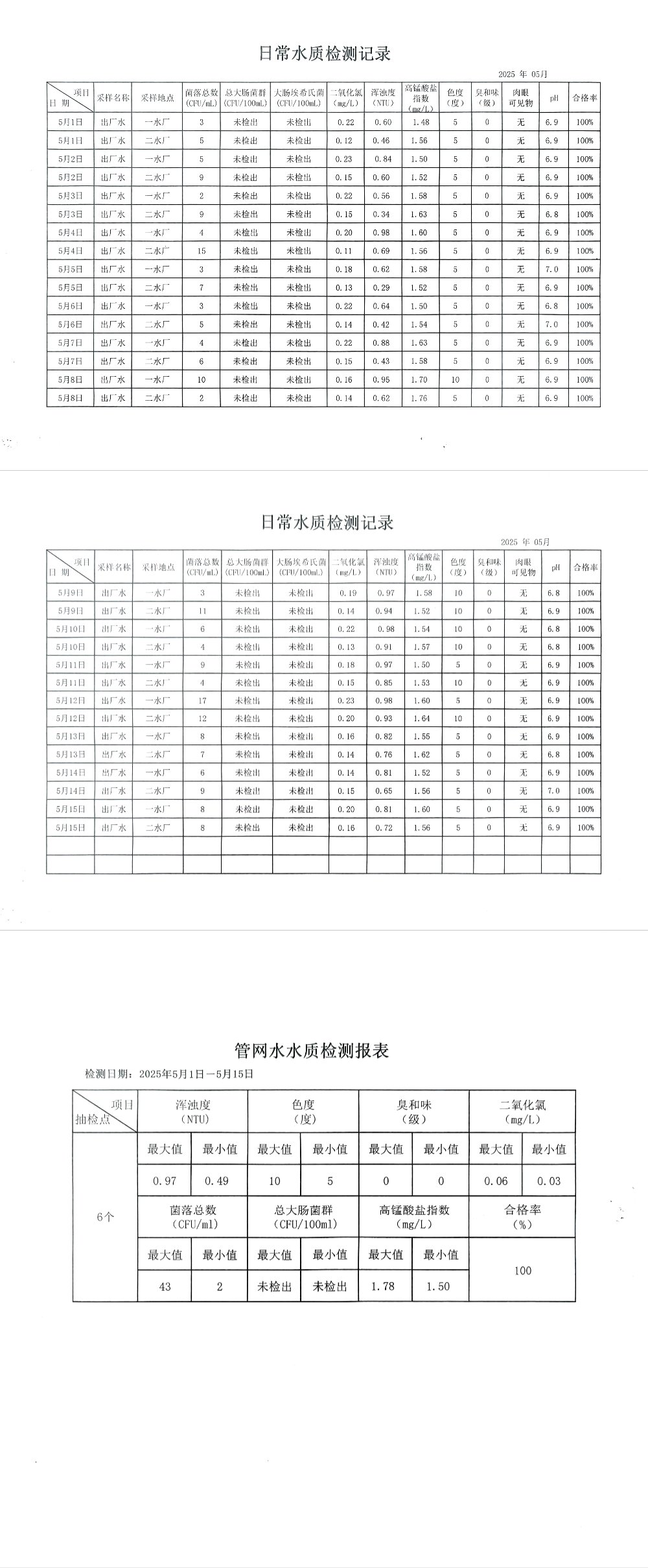 5月上半月興臨自來水公司日檢、半月檢水質信息公開