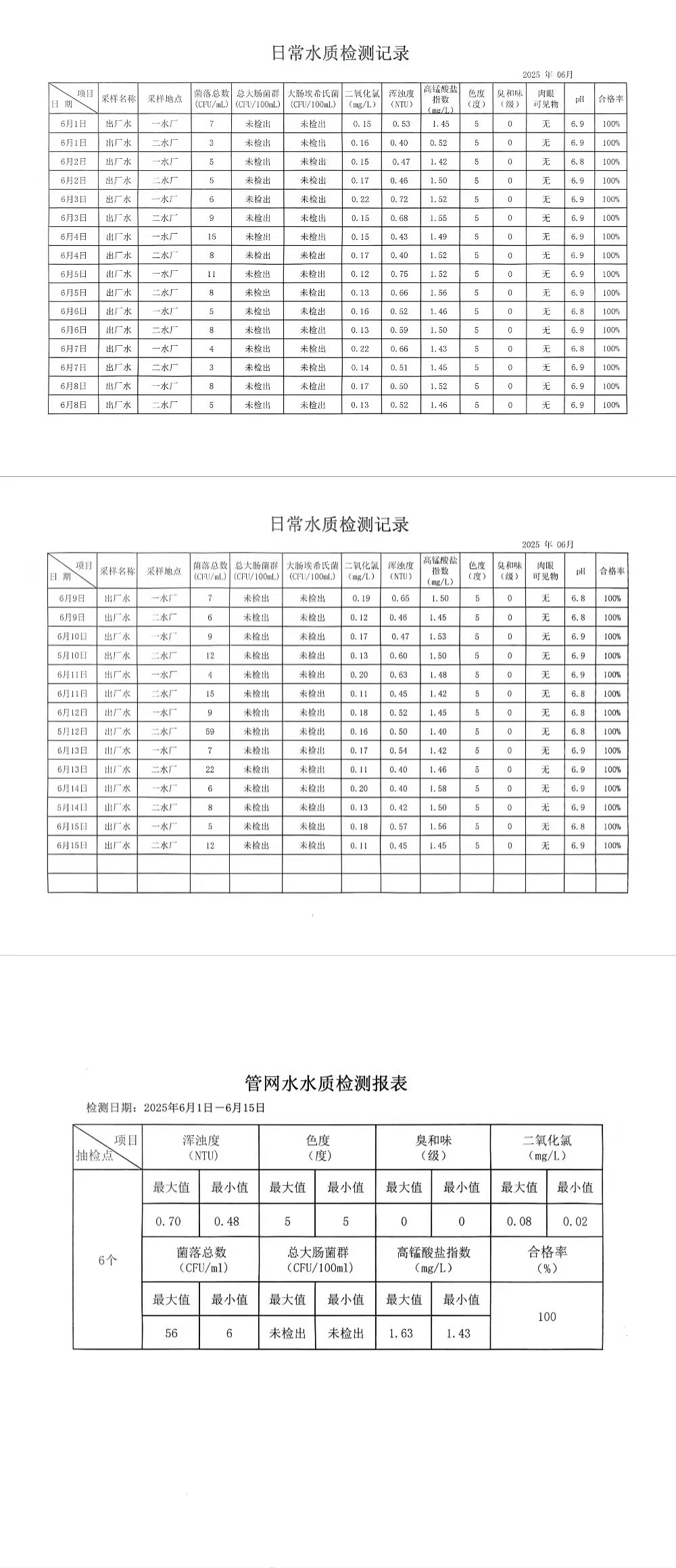 2025年6月上半月興臨自來水公司日檢、半月檢水質(zhì)信息公開
