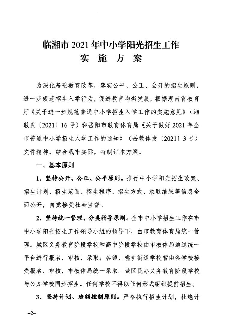 臨湘市2021年中小學(xué)陽光招生工作實(shí)施方案
