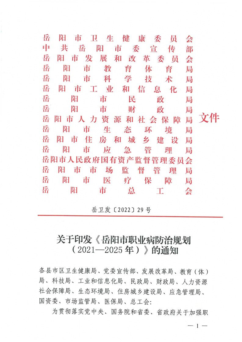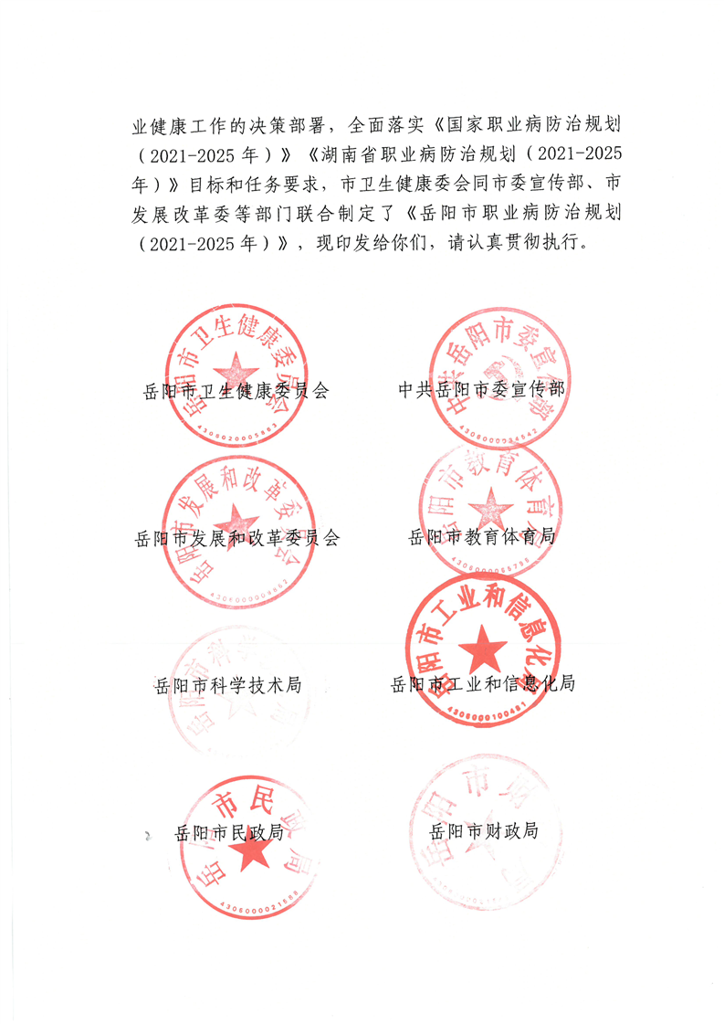關(guān)于印發(fā)《岳陽市職業(yè)病防治規(guī)劃(2021-2025年)》的通知