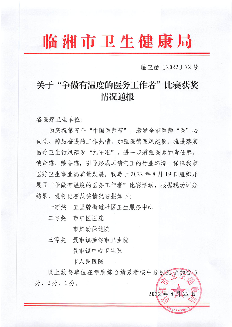 關于“爭做有溫度的醫務工作者”比賽獲獎情況通報