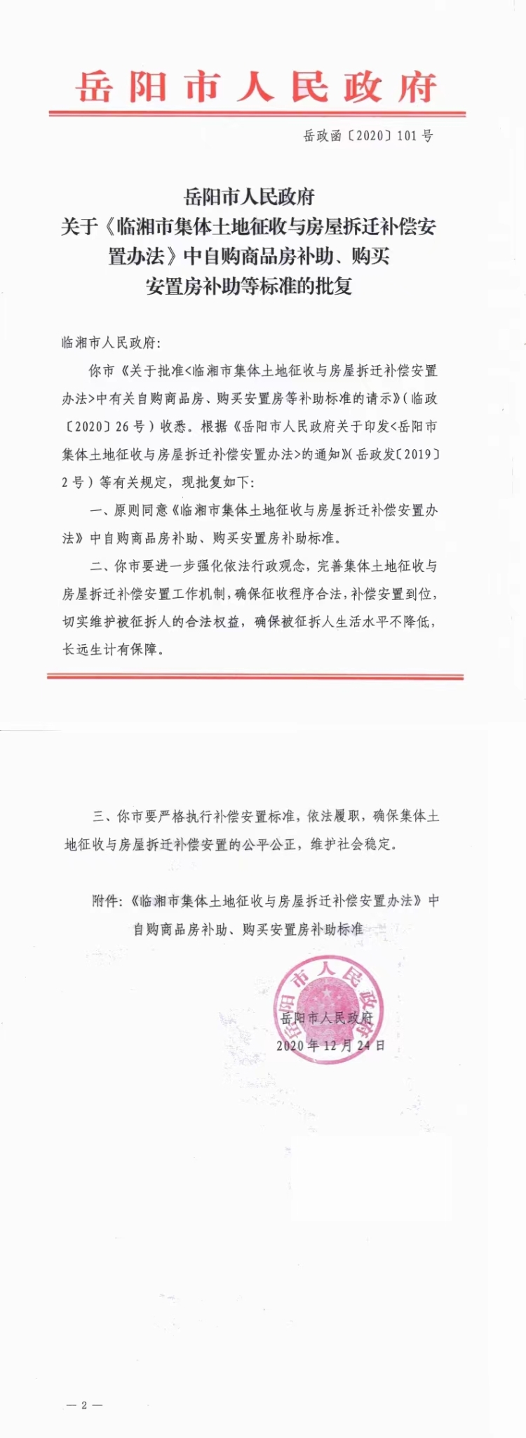 關于《臨湘市集體土地征收與房屋拆遷補償安置辦法》