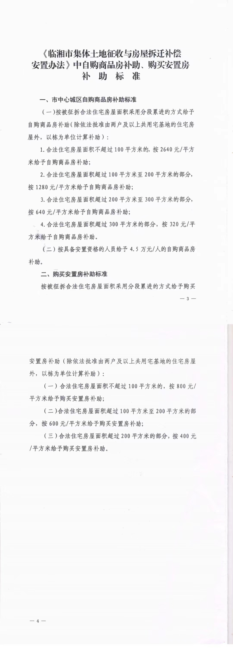 《臨湘市集體土地征收與房屋拆遷補償安置辦法》中自購商品房補助、購買安置房補助標準