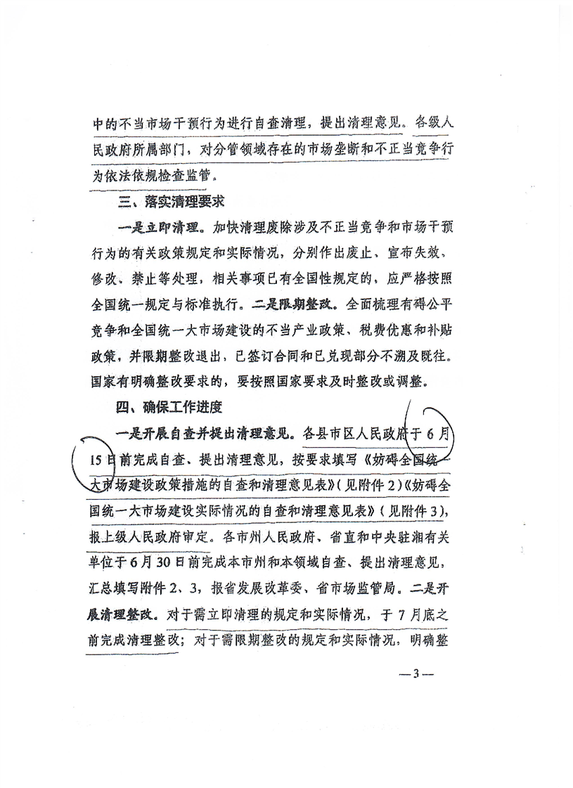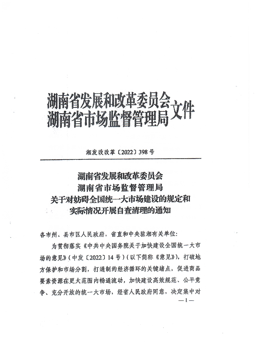 關于開展妨礙全國統一大市場建設規定和實際情況自查清理的通知