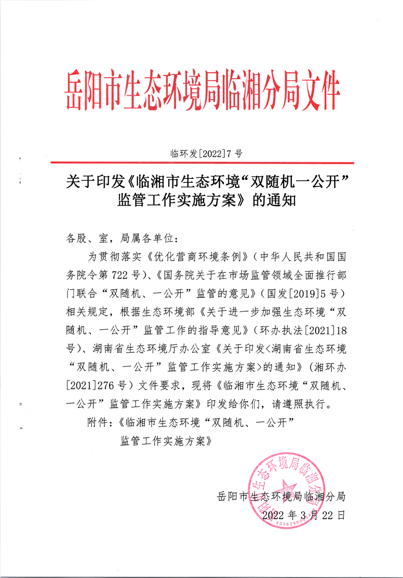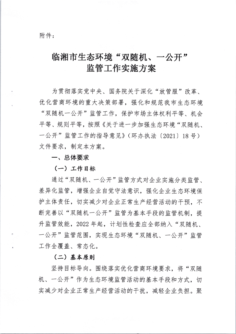 臨湘市生態環境雙隨機一公開監管工作實施方案