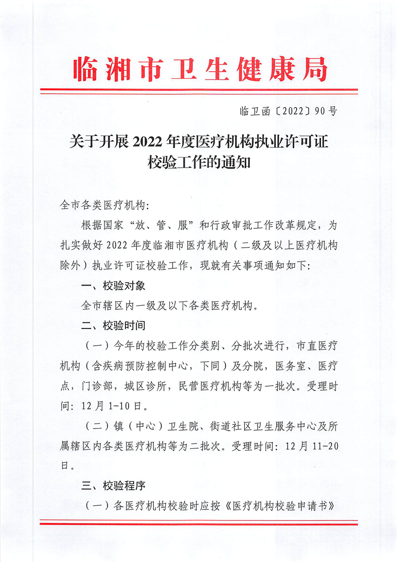 關(guān)于開(kāi)展2022年度醫(yī)療機(jī)構(gòu)執(zhí)業(yè)許可證效驗(yàn)工作的通知(3)