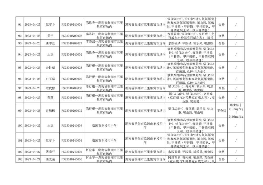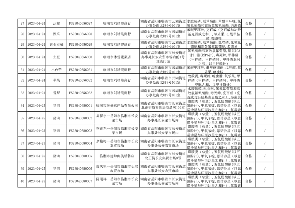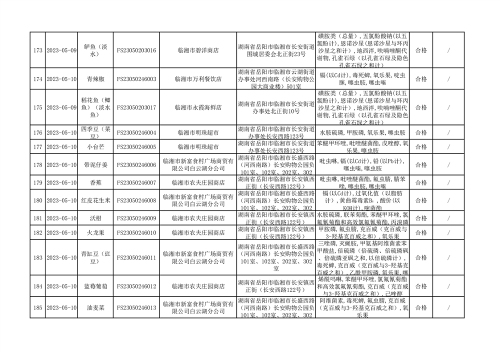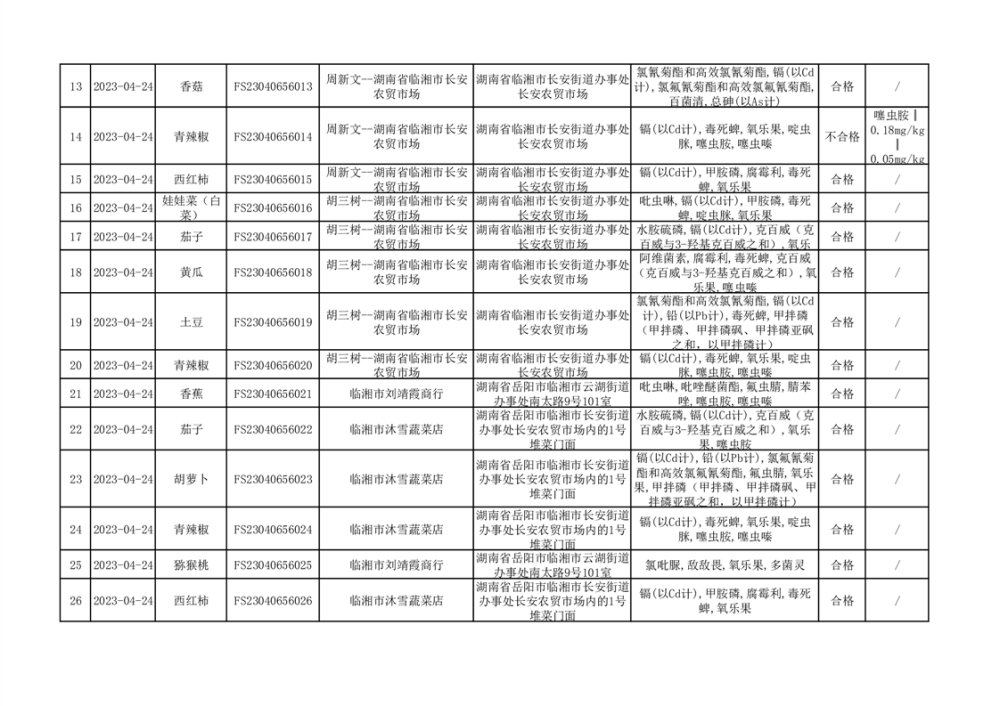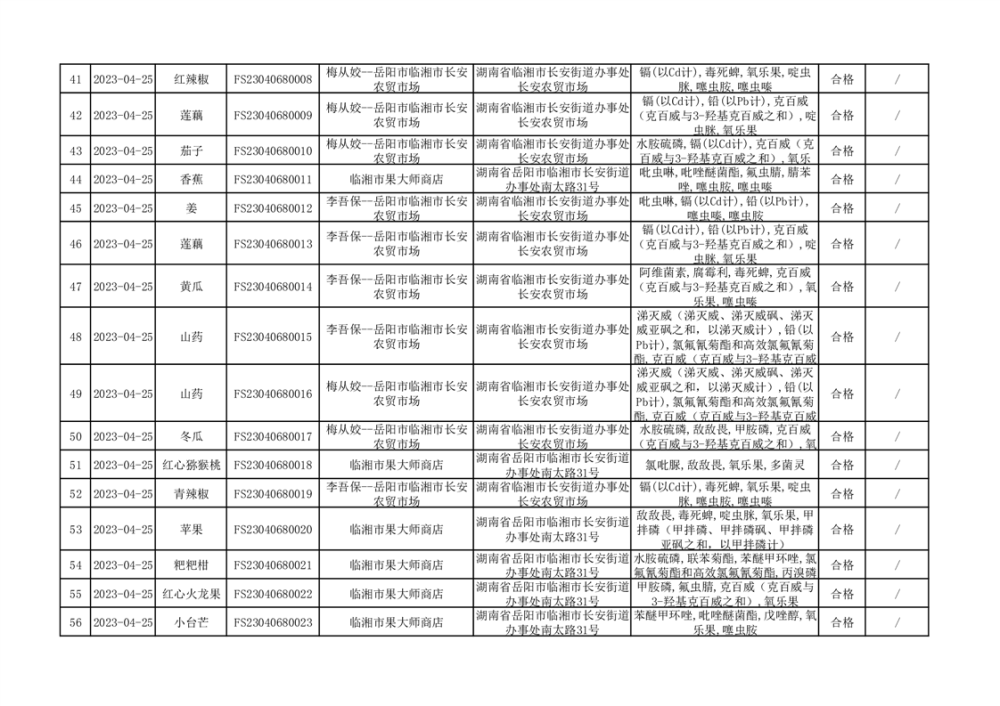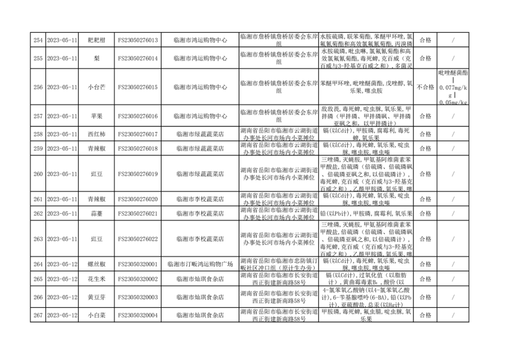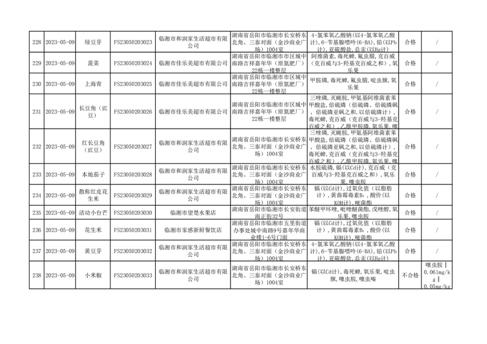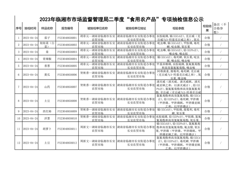 2023年臨湘市市場監(jiān)督管理局二季度農(nóng)產(chǎn)品專項(xiàng)抽檢信息公示