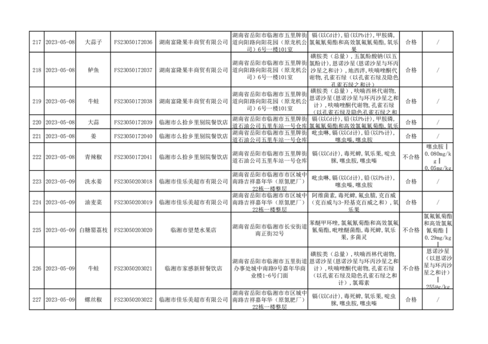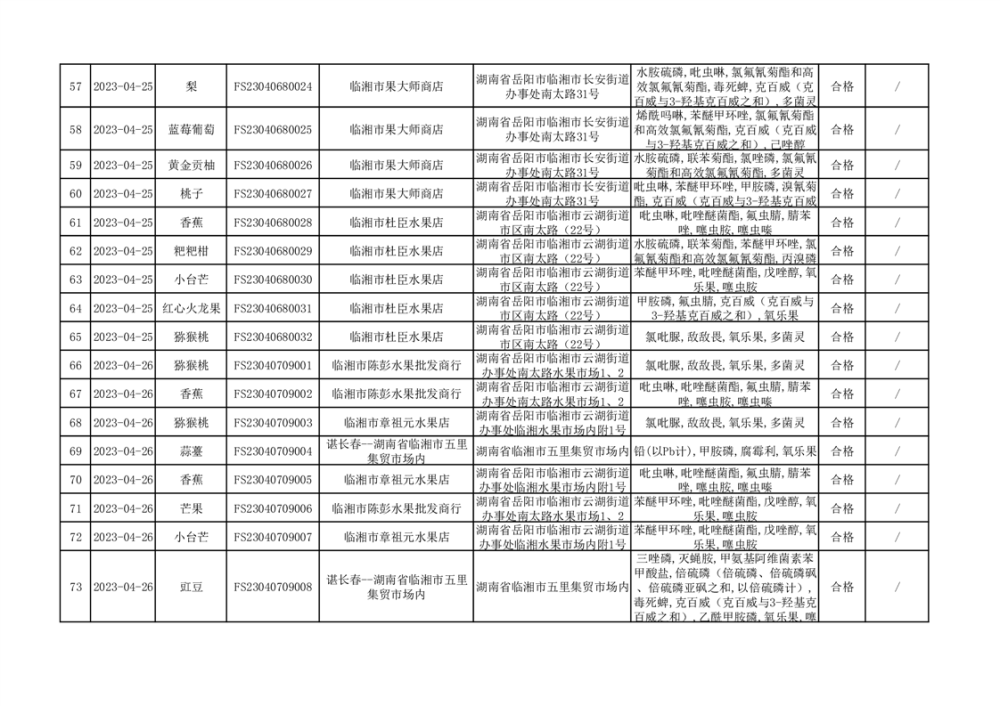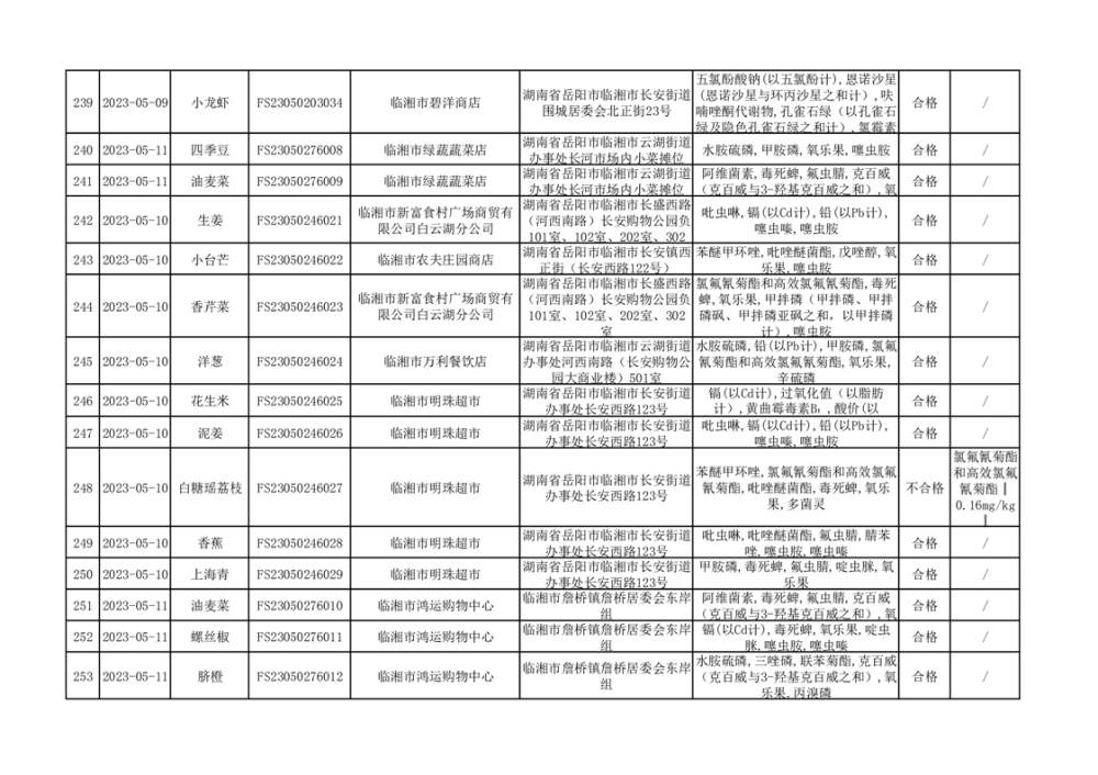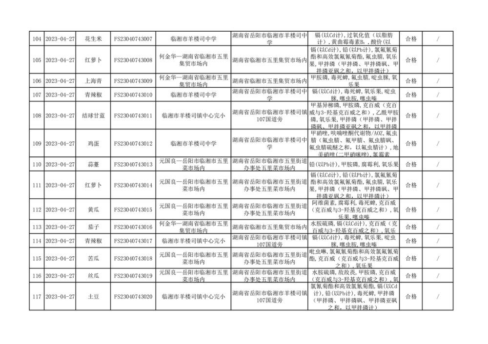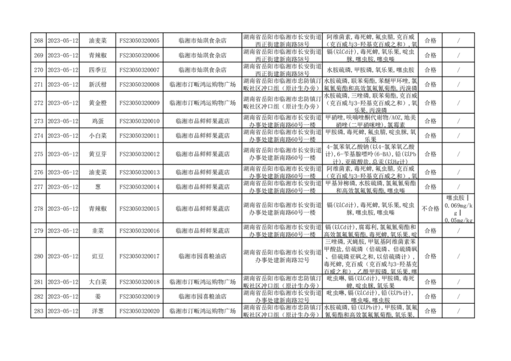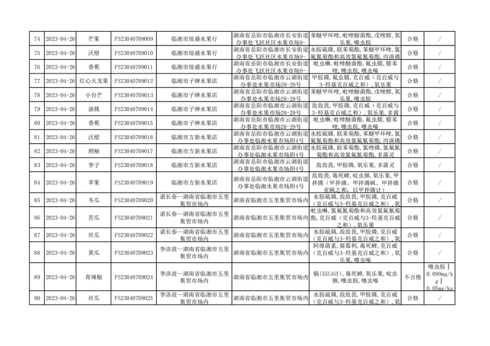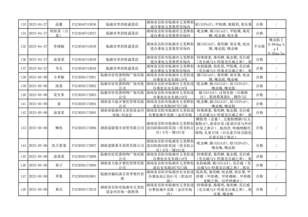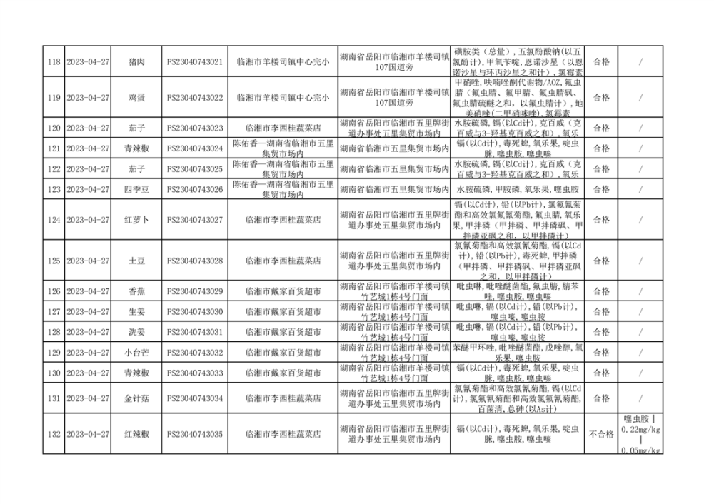 2023年臨湘市市場監(jiān)督管理局二季度農(nóng)產(chǎn)品專項(xiàng)抽檢信息公示