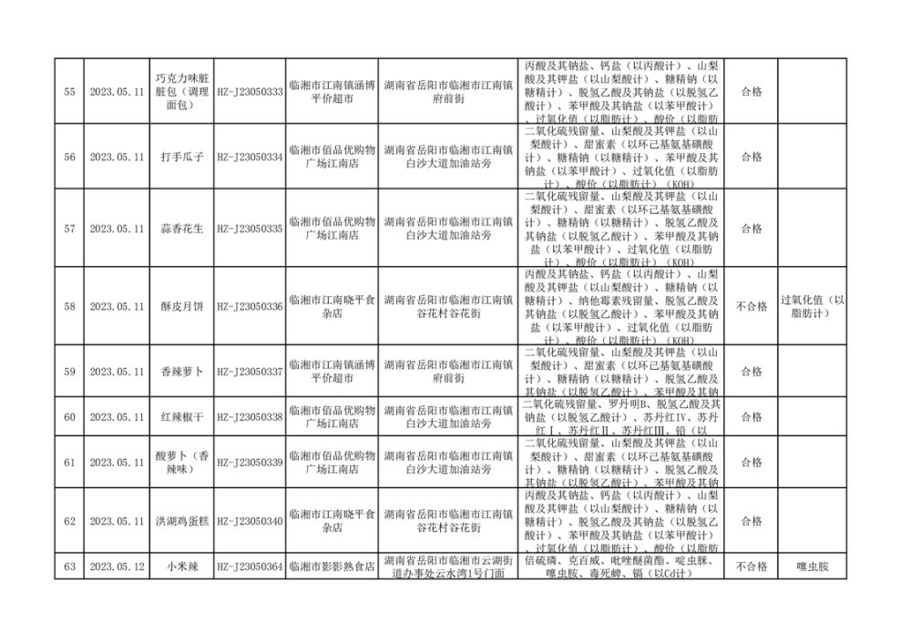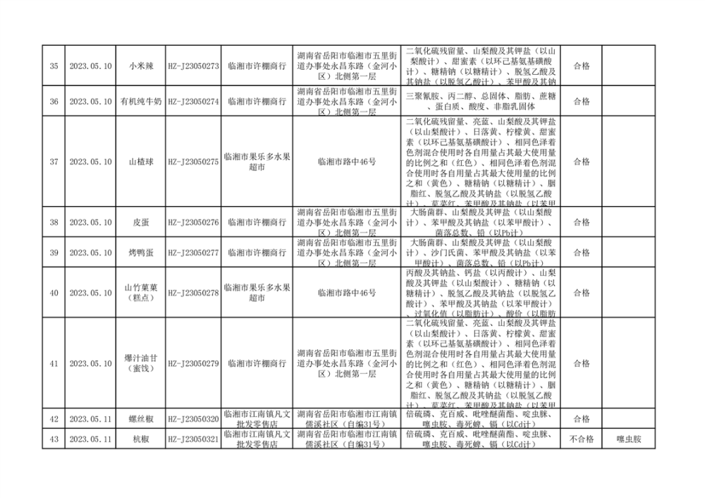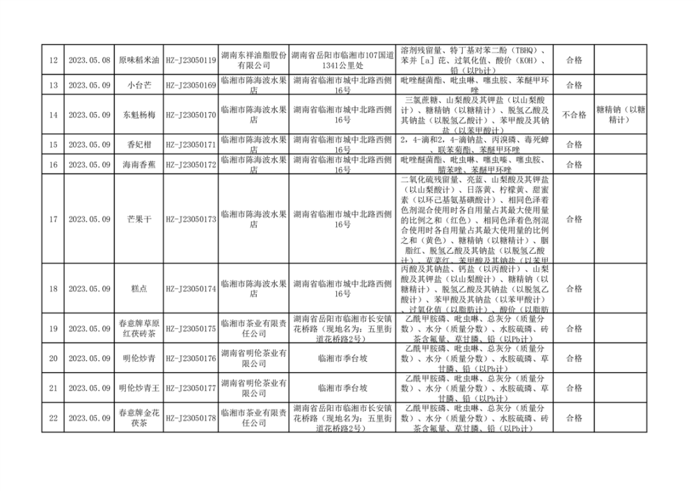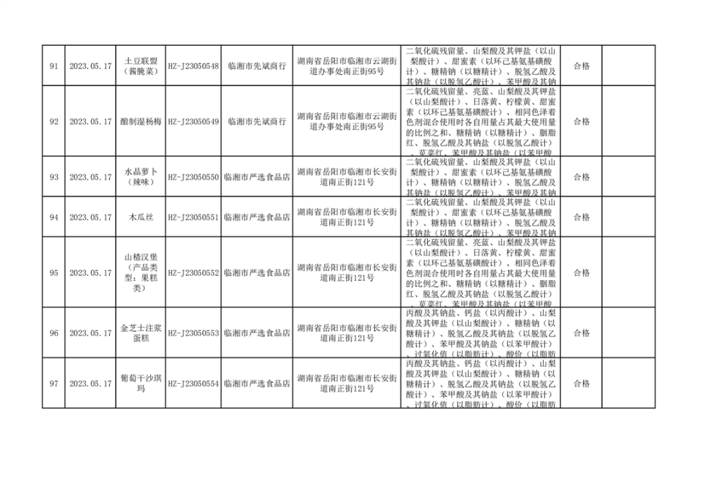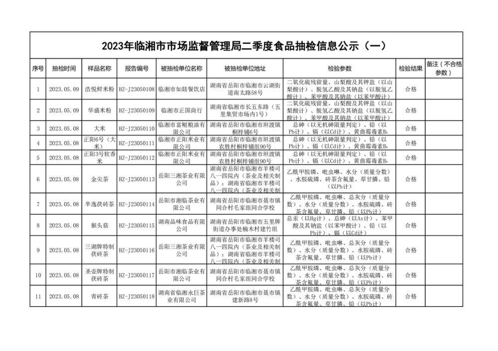 2023年臨湘市市場監督管理局二季度食品抽檢信息公示(一)