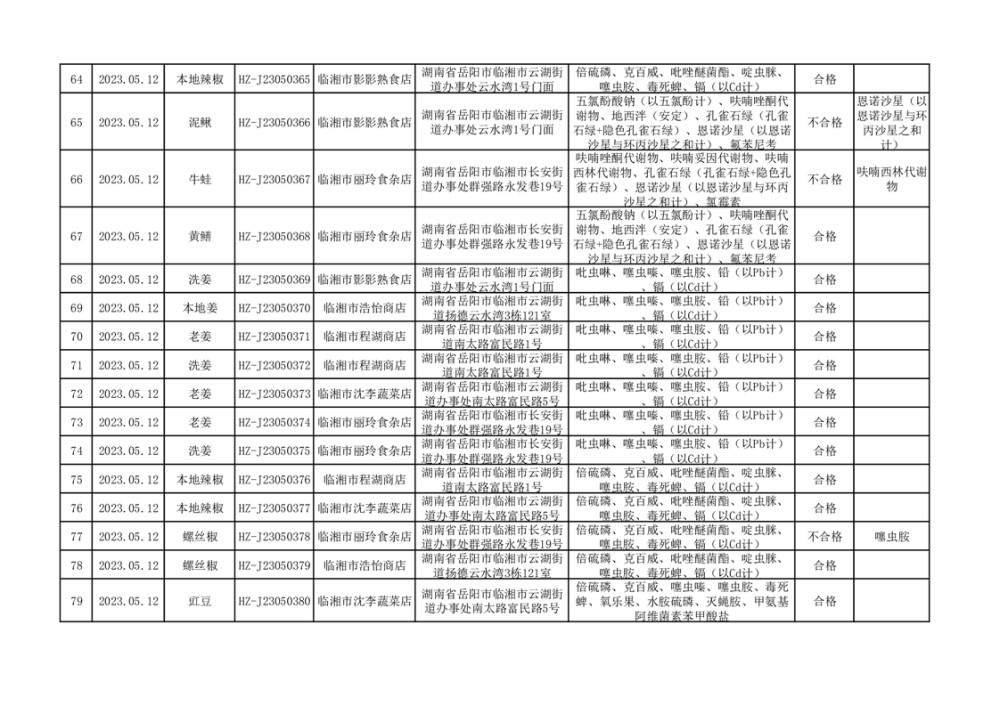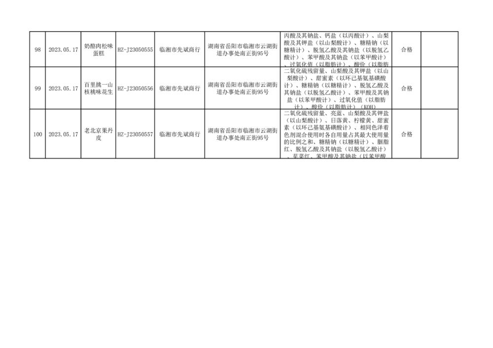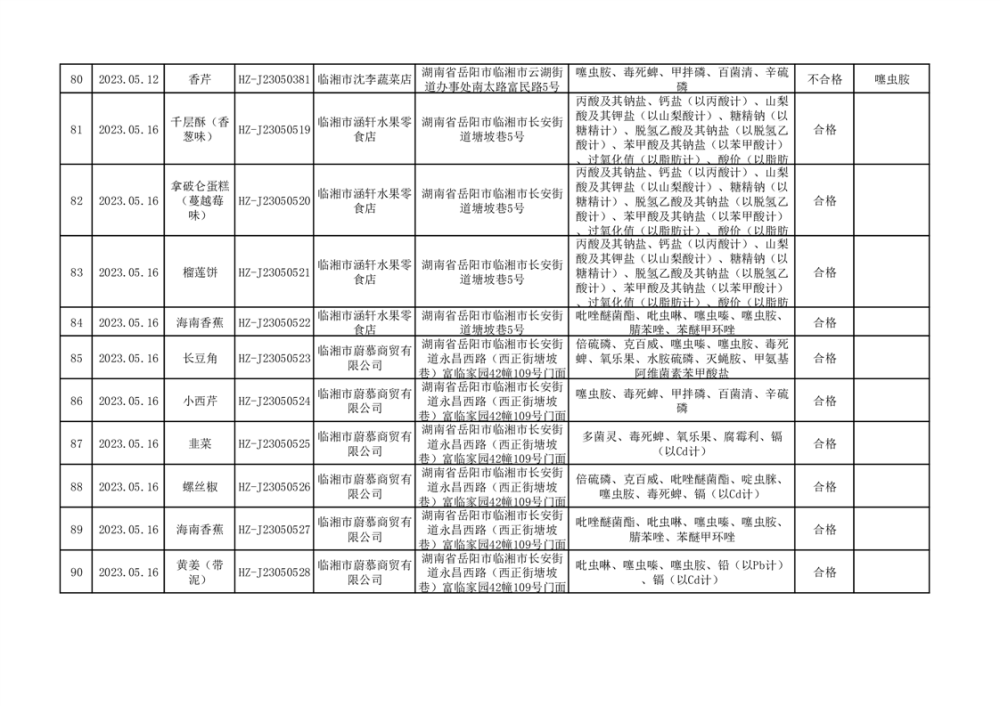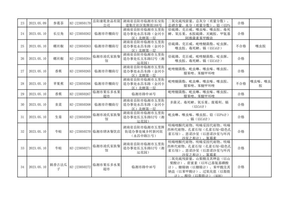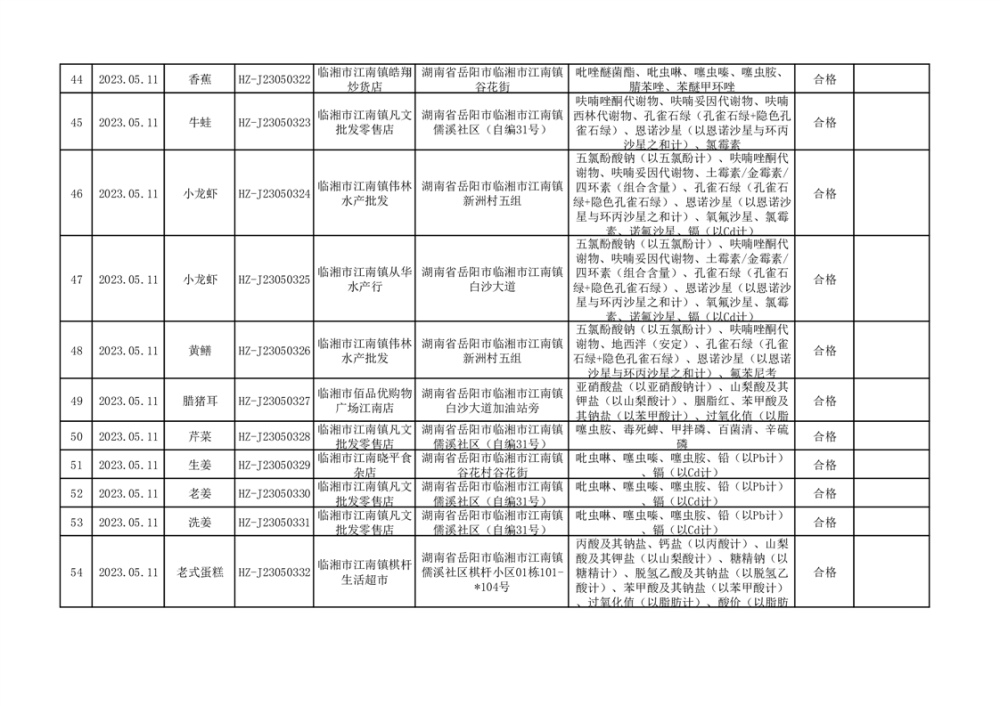 2023年臨湘市市場監督管理局二季度食品抽檢信息公示(一)