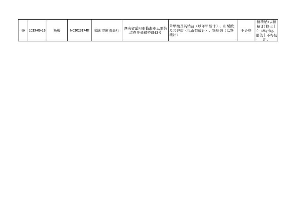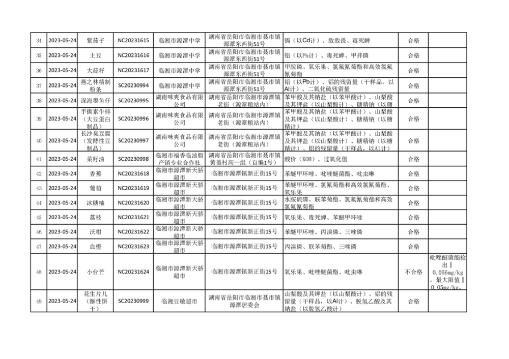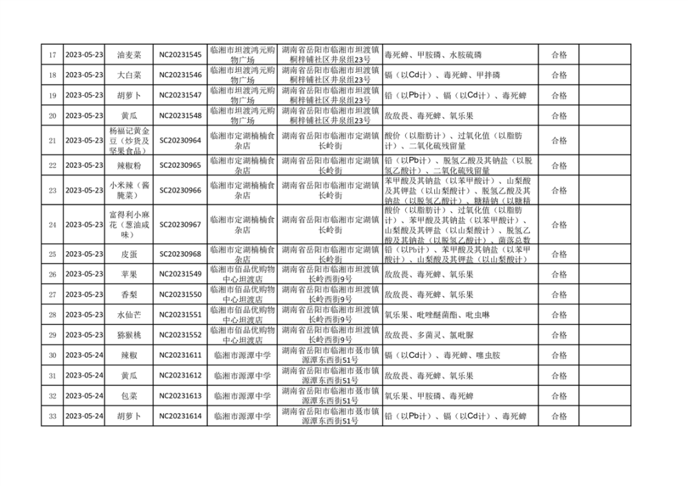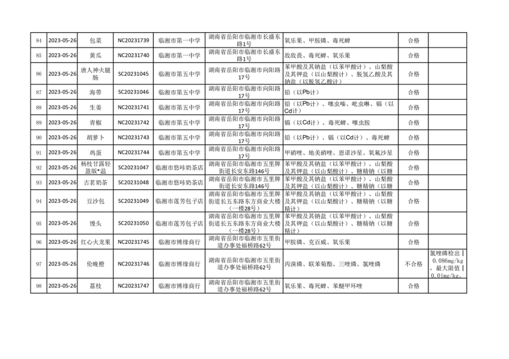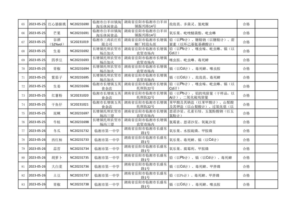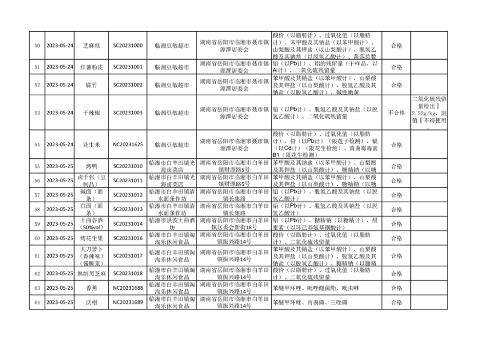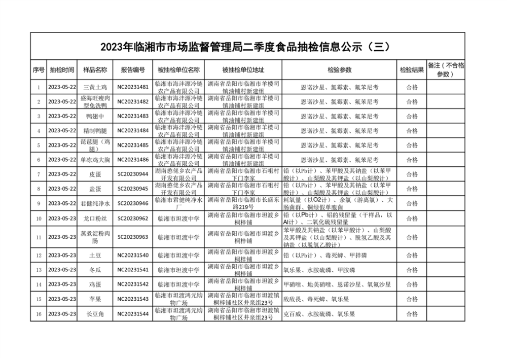 2023年臨湘市市場監督管理局二季度食品抽檢信息公示(三)