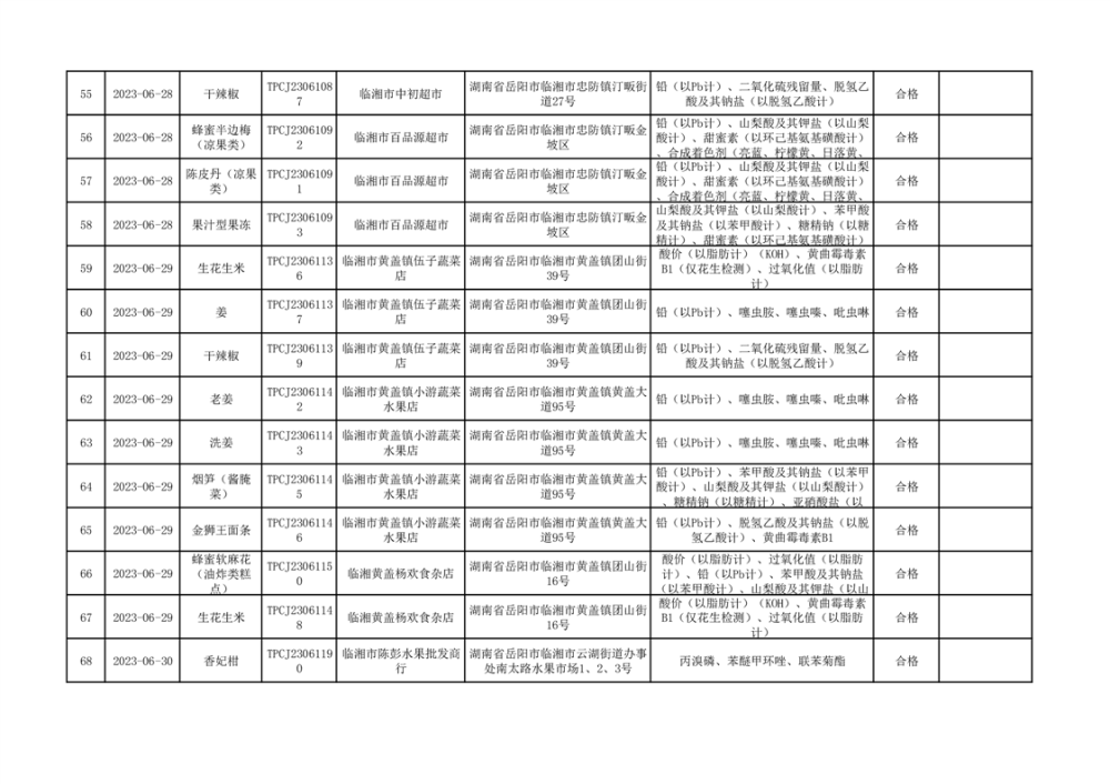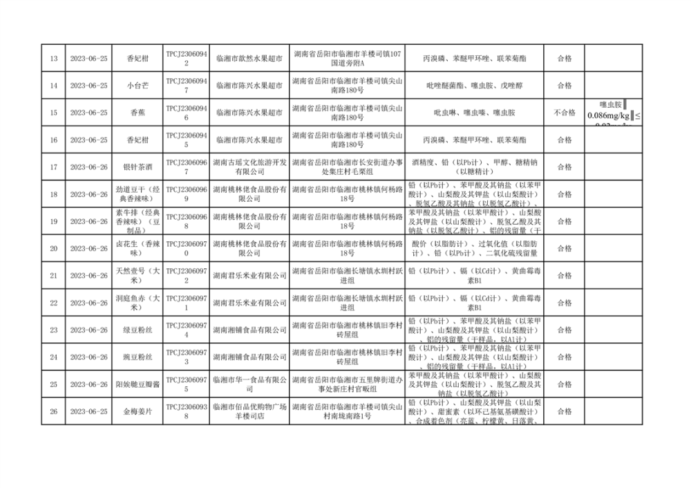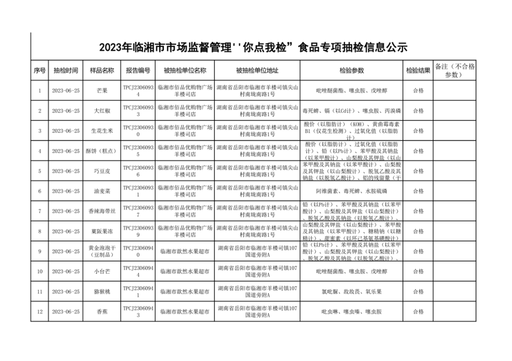 2023年臨湘市市場監(jiān)督管理''你點(diǎn)我檢”食品專項(xiàng)抽檢信息公示