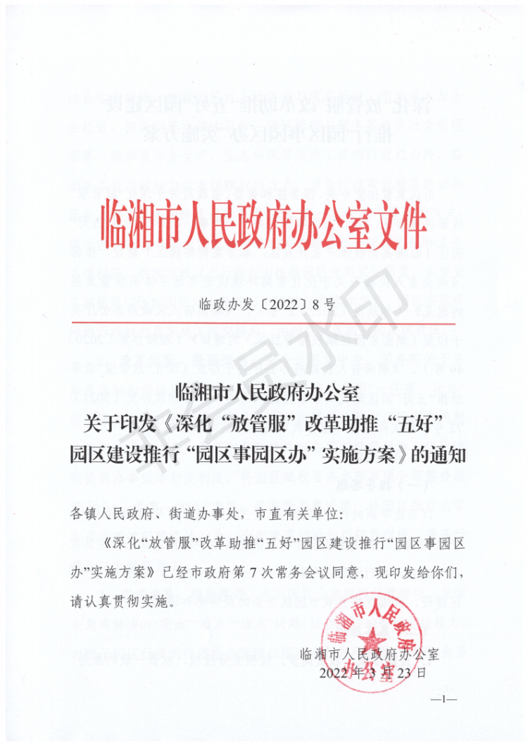 深化“放管服”改革助推“五好”園區建設推行“園區事園區辦”實施方案