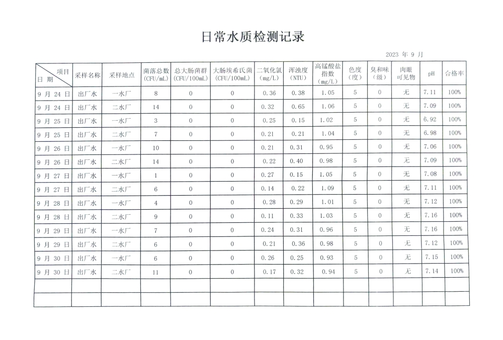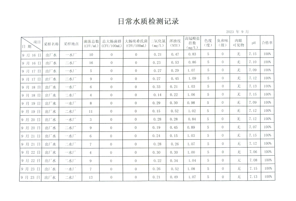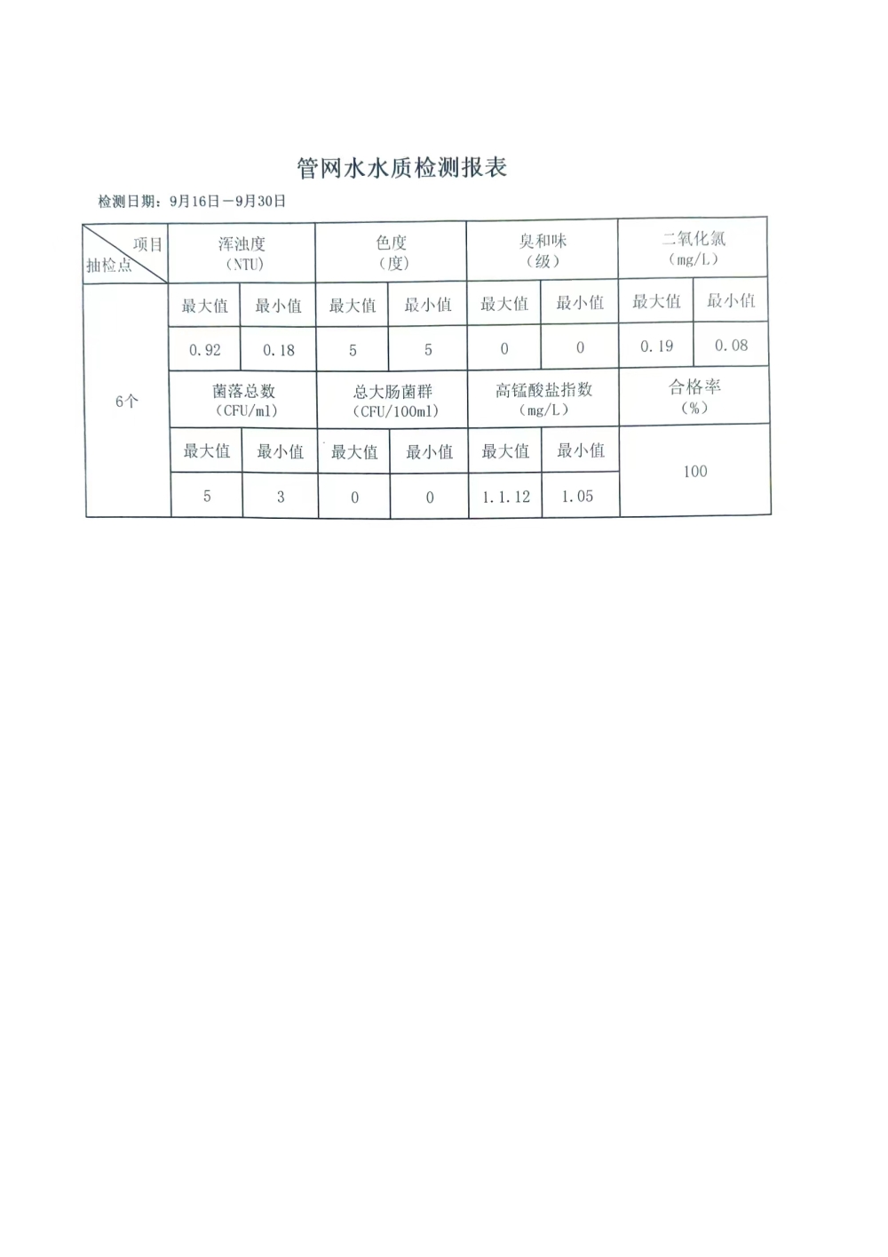 興臨自來水公司日檢、半月檢水質(zhì)信息公開(9月下半月)