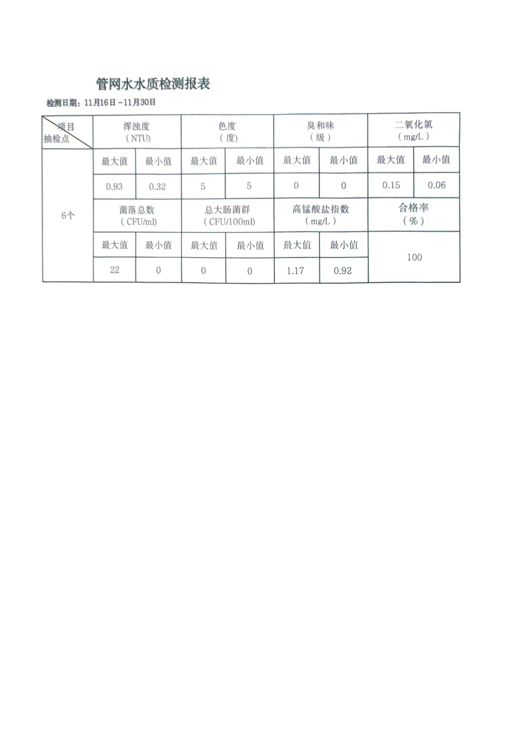 興臨自來水公司日檢、半月檢水質(zhì)信息公開(11月下半月)