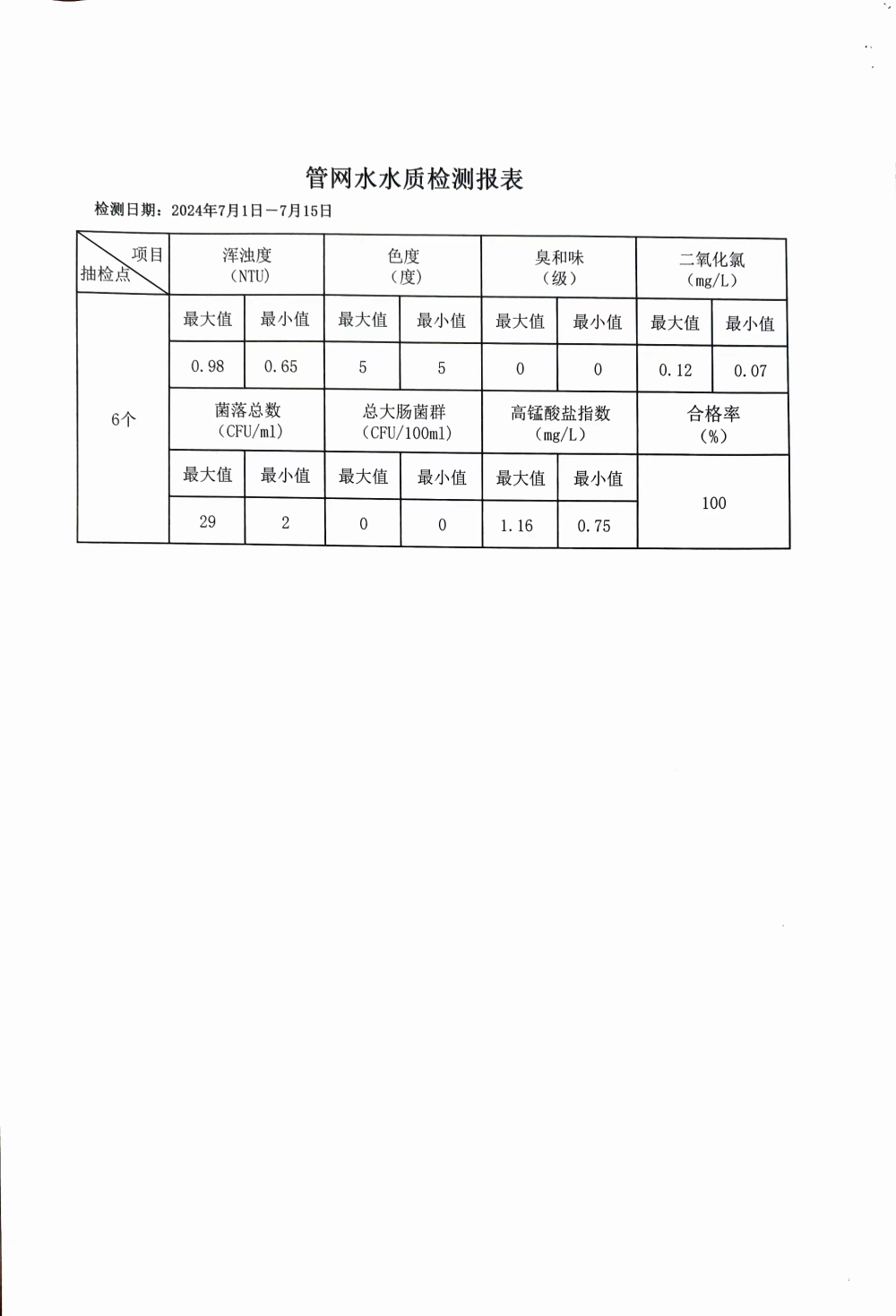 7月上半月興臨自來(lái)水公司日檢、半月檢水質(zhì)信息公開(kāi)