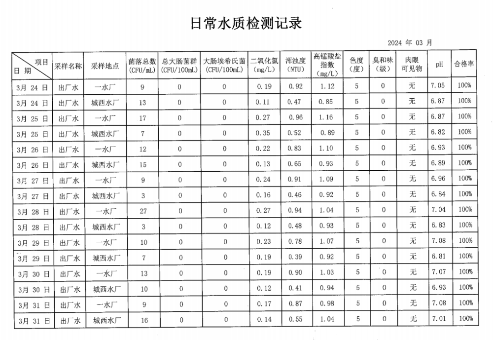 興臨自來水公司日檢、半月檢水質信息公開(3月下半月)
