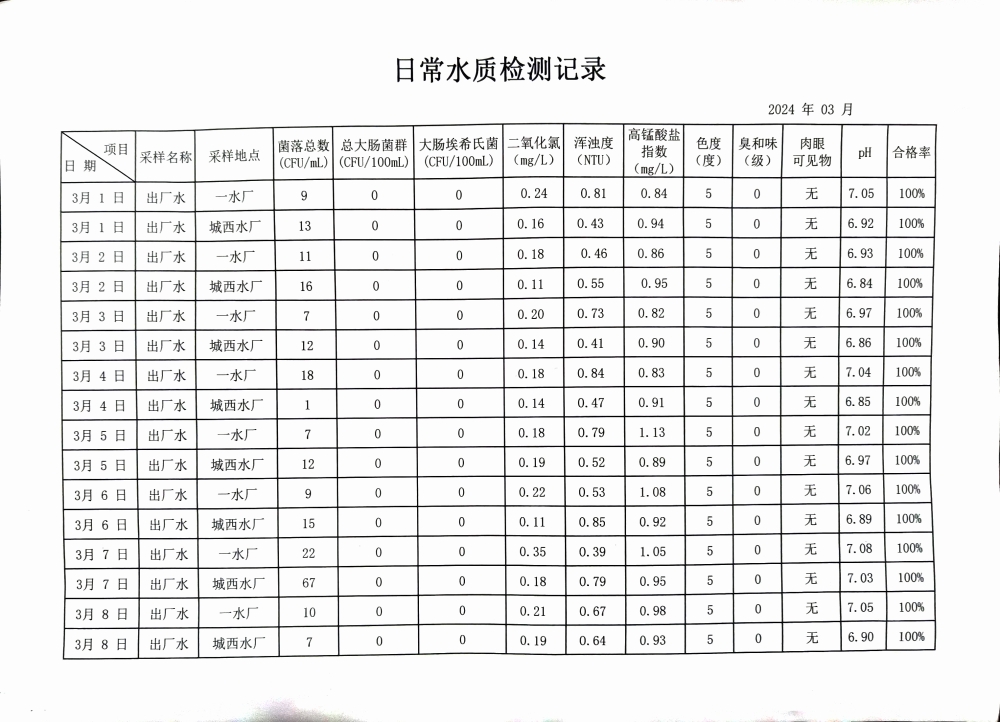 興臨自來水公司日檢、半月檢水質(zhì)信息公開(3月上半月)