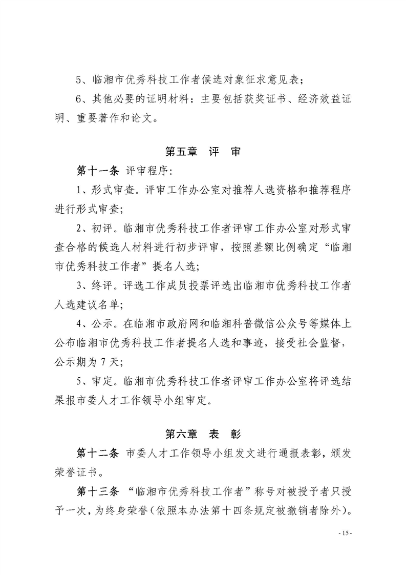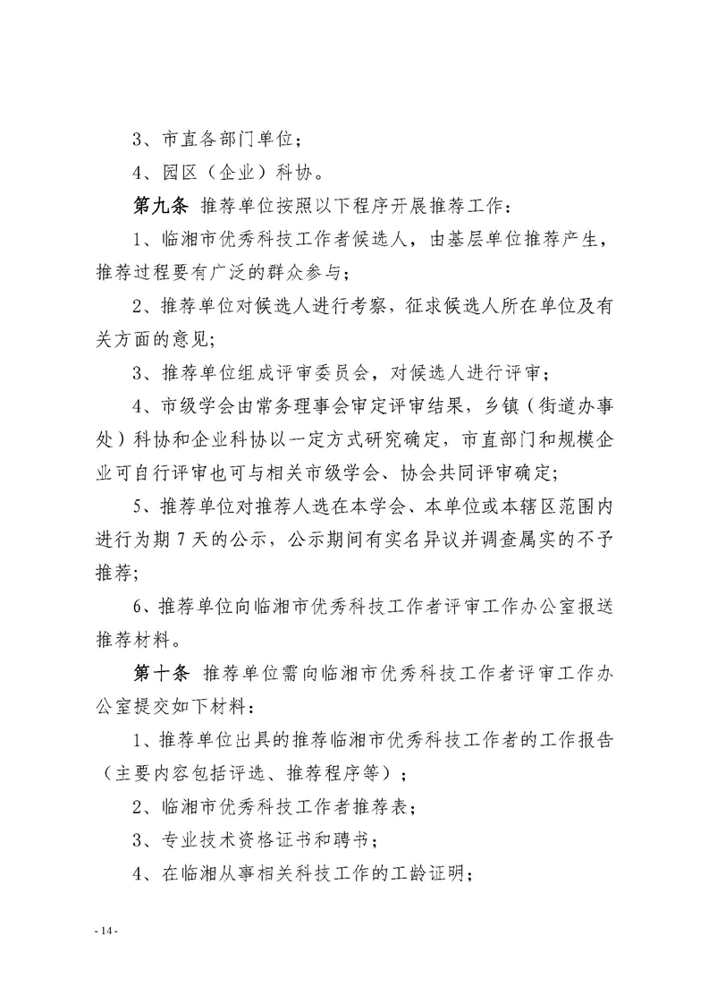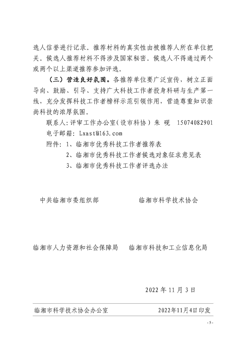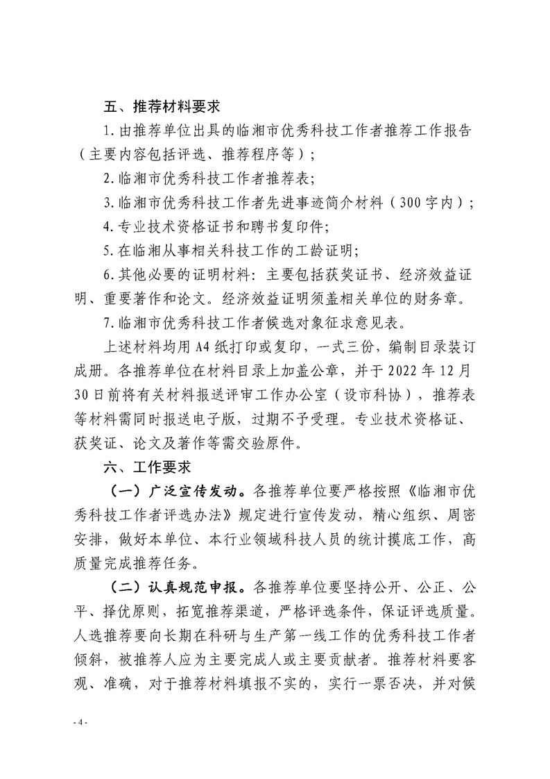 關(guān)于開展第四屆臨湘市優(yōu)秀科技工作者評選工作通知