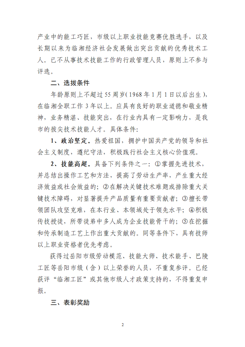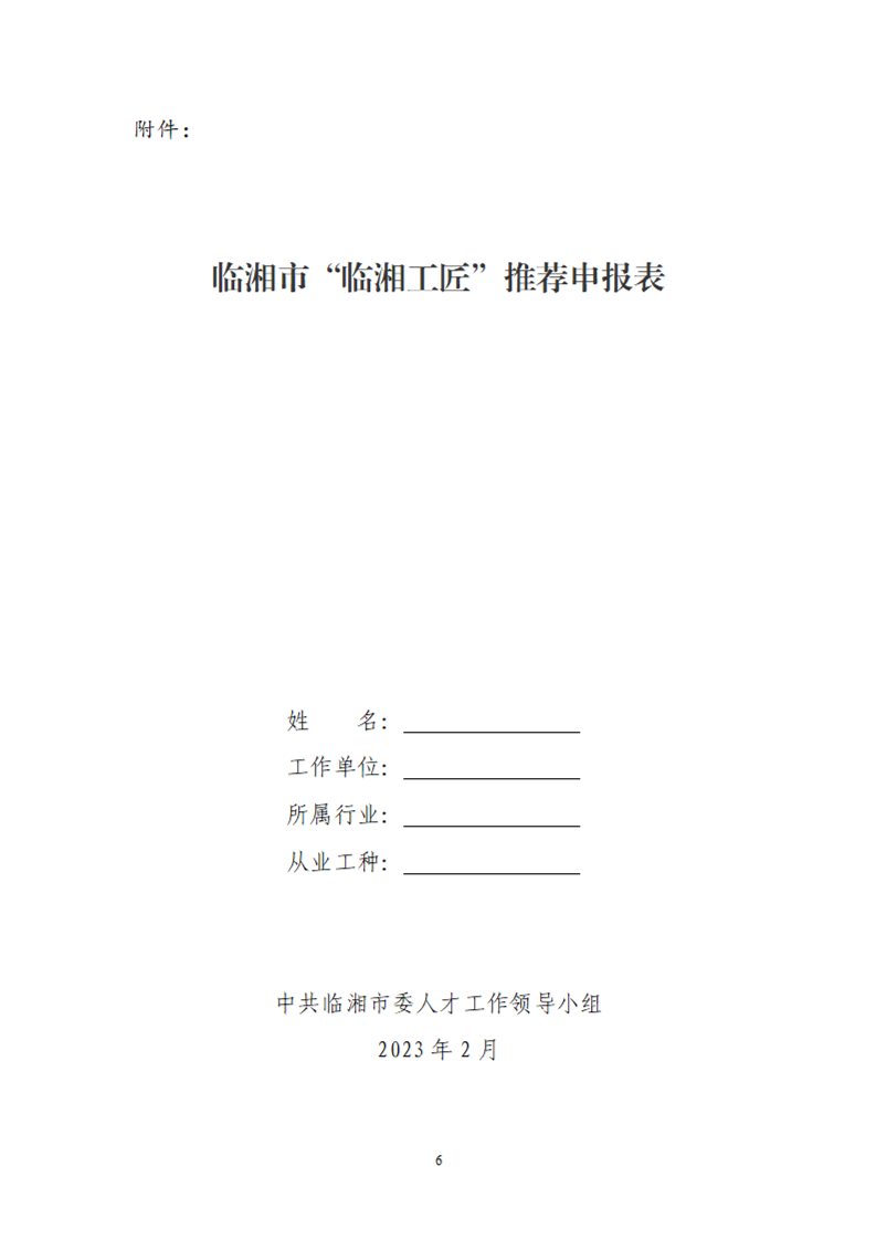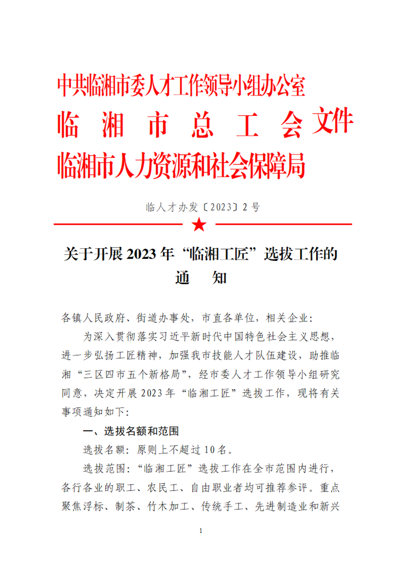 關(guān)于開展2023年“臨湘工匠”選拔工作的通知