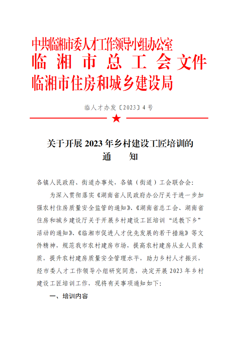 關于開展2023年鄉村建設工匠培訓的通知